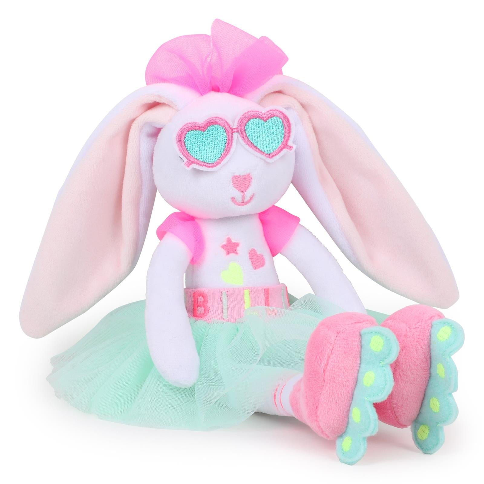 Das zarte Tüllröckchen in Mint, kleine Herz- und Sternapplikationen sowie die knalligen Farbakzente machen die Häsin zu einer kleinen Stilikone. Kuschelig weich, liebevoll verarbeitet und perfekt zum Spielen, Trösten oder Dekorieren – diese Billieblush-Freundin begleitet durch fantasievolle Abenteuer und gemütliche Kuschelstunden gleichermaßen ✨