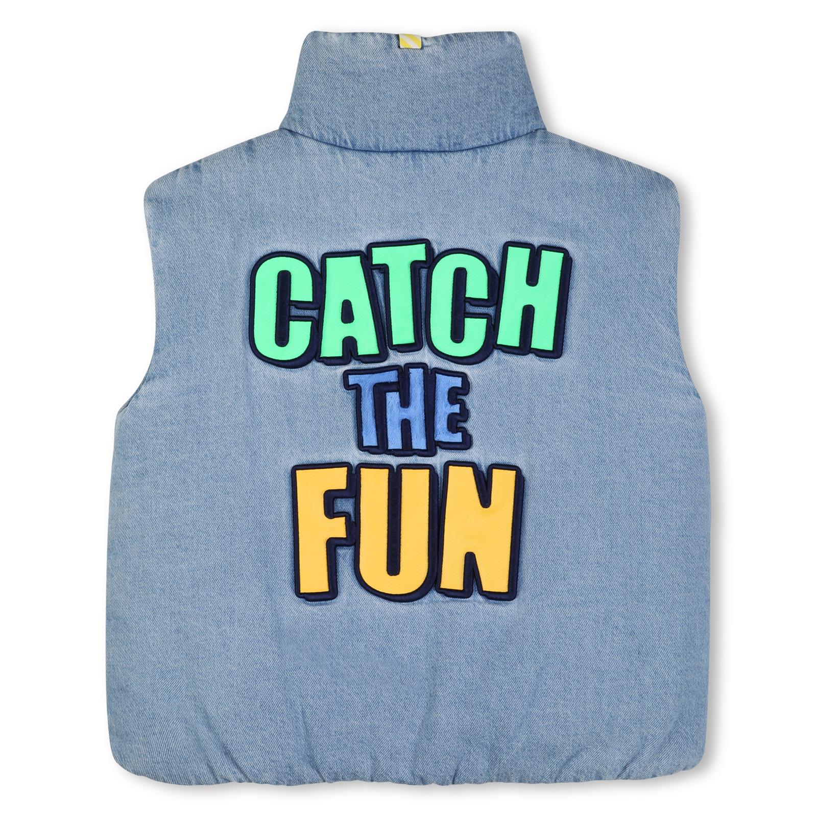 Diese lässige Jeansweste ist ein echtes Lieblingspiece für kleine Trendsetter 🧡. Der weiche Denim-Look trifft auf ein fröhliches Statement: „Catch the Fun“ auf dem Rücken sorgt sofort für gute Laune und macht klar – hier geht es um Spaß, Abenteuer und Farbe 🎉🌈