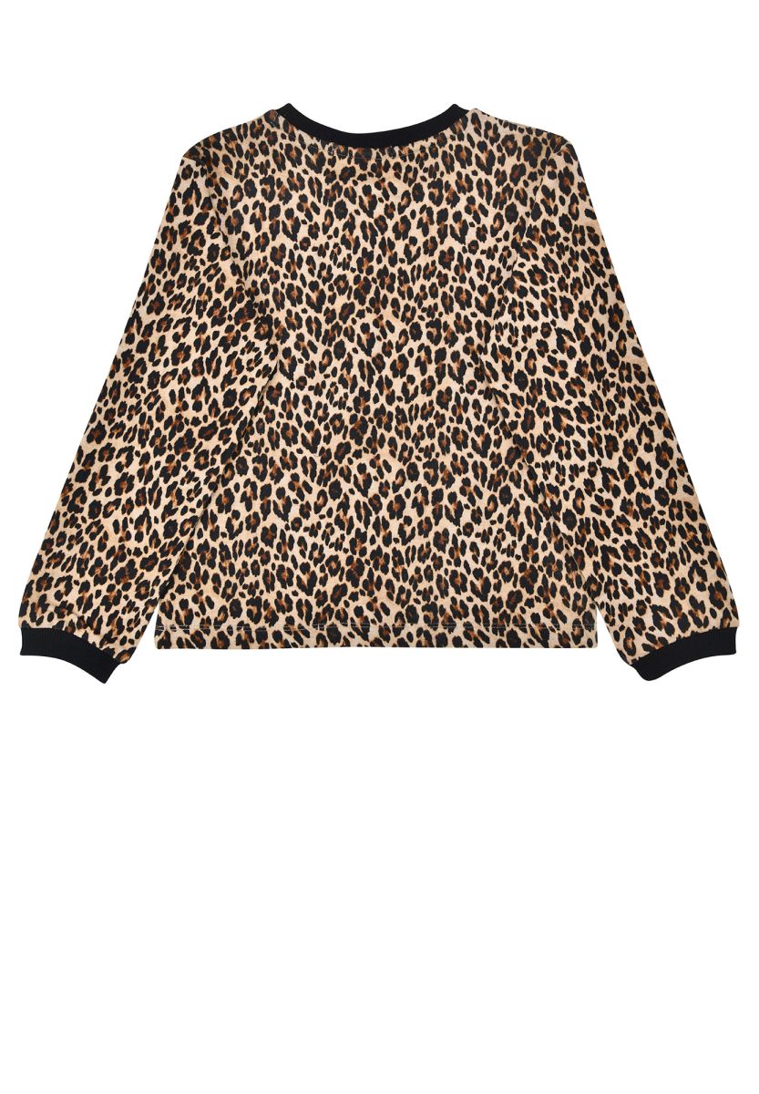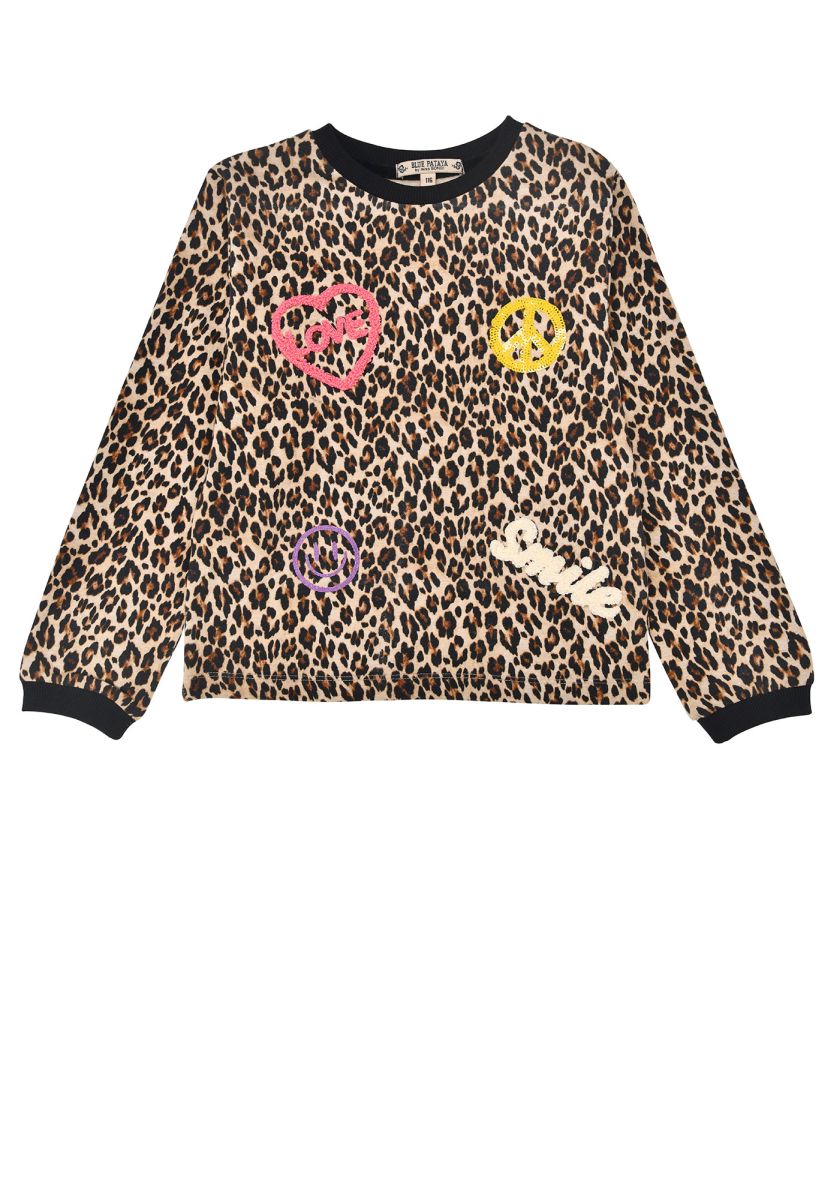Dieser Pullover ist ein echtes Statement-Piece für kleine Trendsetter. Das auffällige Leopardenmuster wird durch farbenfrohe Stickereien wie Herz, Peace-Zeichen und den Schriftzug „Smile“ verspielt ergänzt. Schwarze Bündchen an Hals und Ärmeln runden das Design lässig ab.