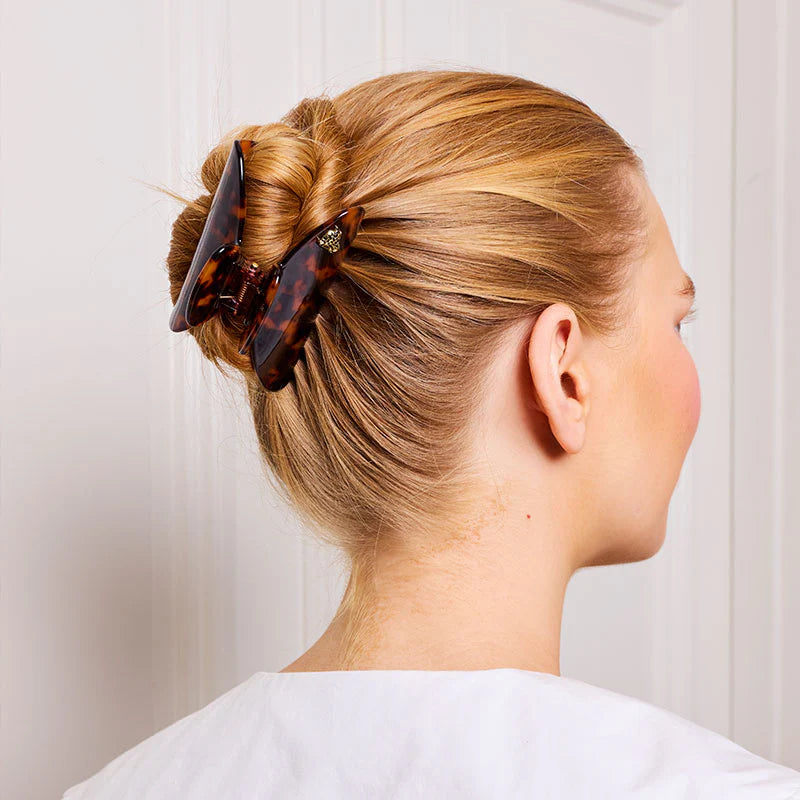 Diese stilvolle Haarkralle im eleganten Schildpatt-Look ist eine wunderschöne Ergänzung für deine Haaraccessoires. Gefertigt aus hochwertigem Acetat überzeugt sie mit stabiler Qualität und einem angenehmen Halt im Haar.