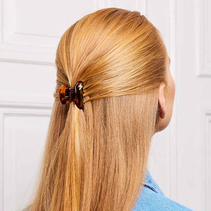 Diese kleine Haarkralle im klassischen Schildpatt-Look ist ein elegantes und zugleich praktisches Accessoire für jeden Tag. Die warmen Braun- und Karamelltöne verleihen ihr eine zeitlose Ausstrahlung und lassen sich wunderbar zu vielen Frisuren kombinieren.