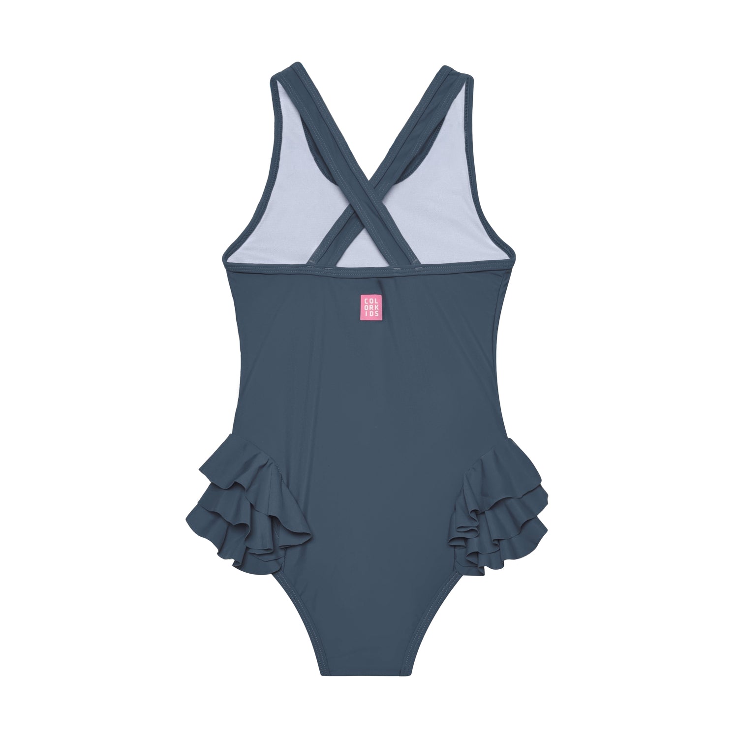 Der bequeme Schnitt mit gekreuzten Trägern sorgt für guten Halt und viel Bewegungsfreiheit beim Schwimmen und Spielen. Das weiche, elastische Material sitzt angenehm und macht jede Bewegung problemlos mit.
