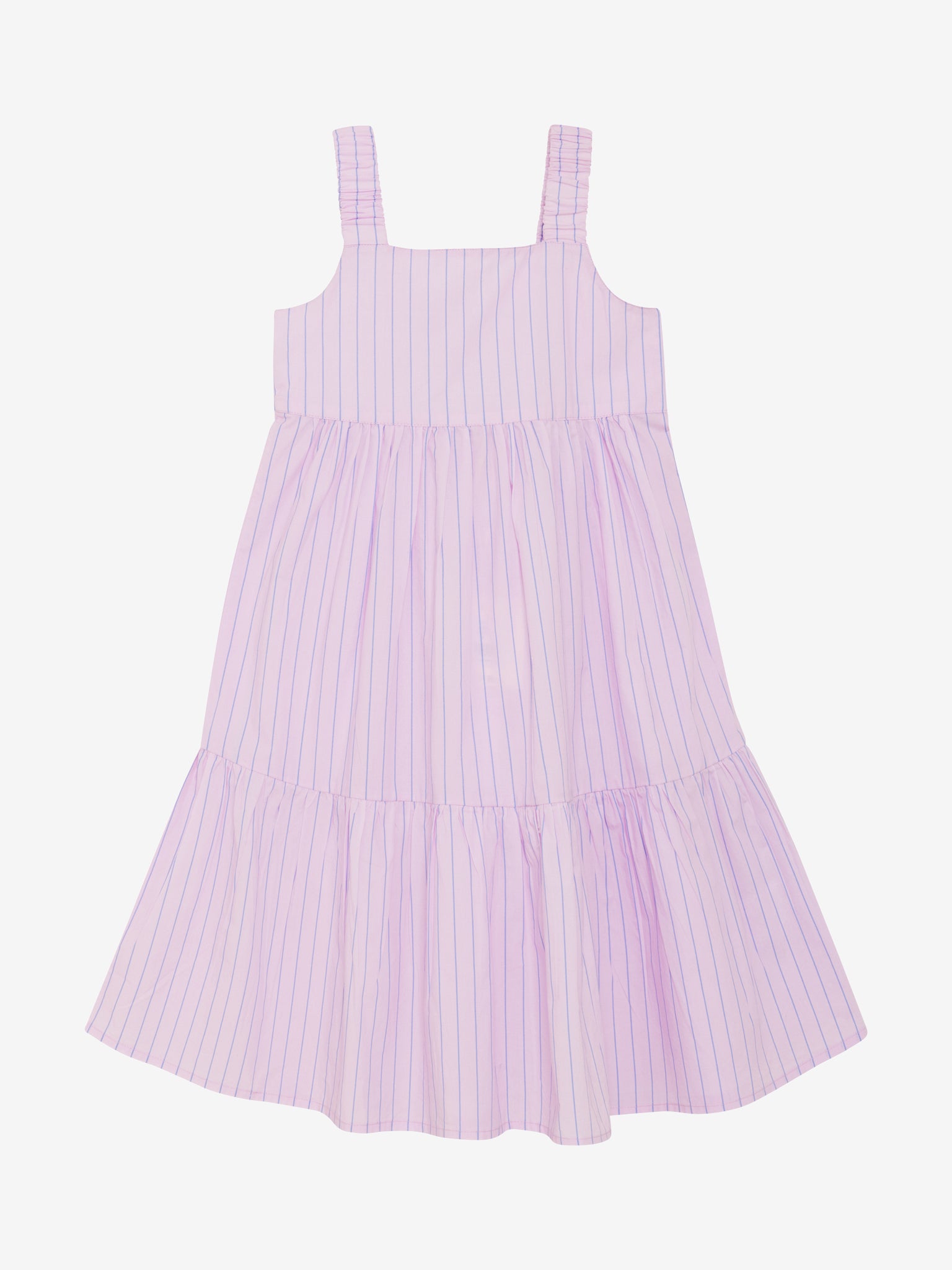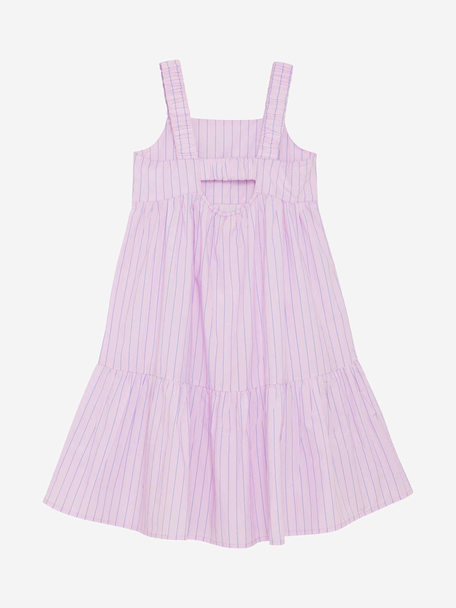 Dieses bezaubernde Kleid in einem sanften Roséton mit feinen blauen Streifen wirkt herrlich leicht und gleichzeitig richtig besonders. ✨ Die breiten Träger sitzen bequem auf den Schultern und geben dem Kleid einen süßen, modernen Look.