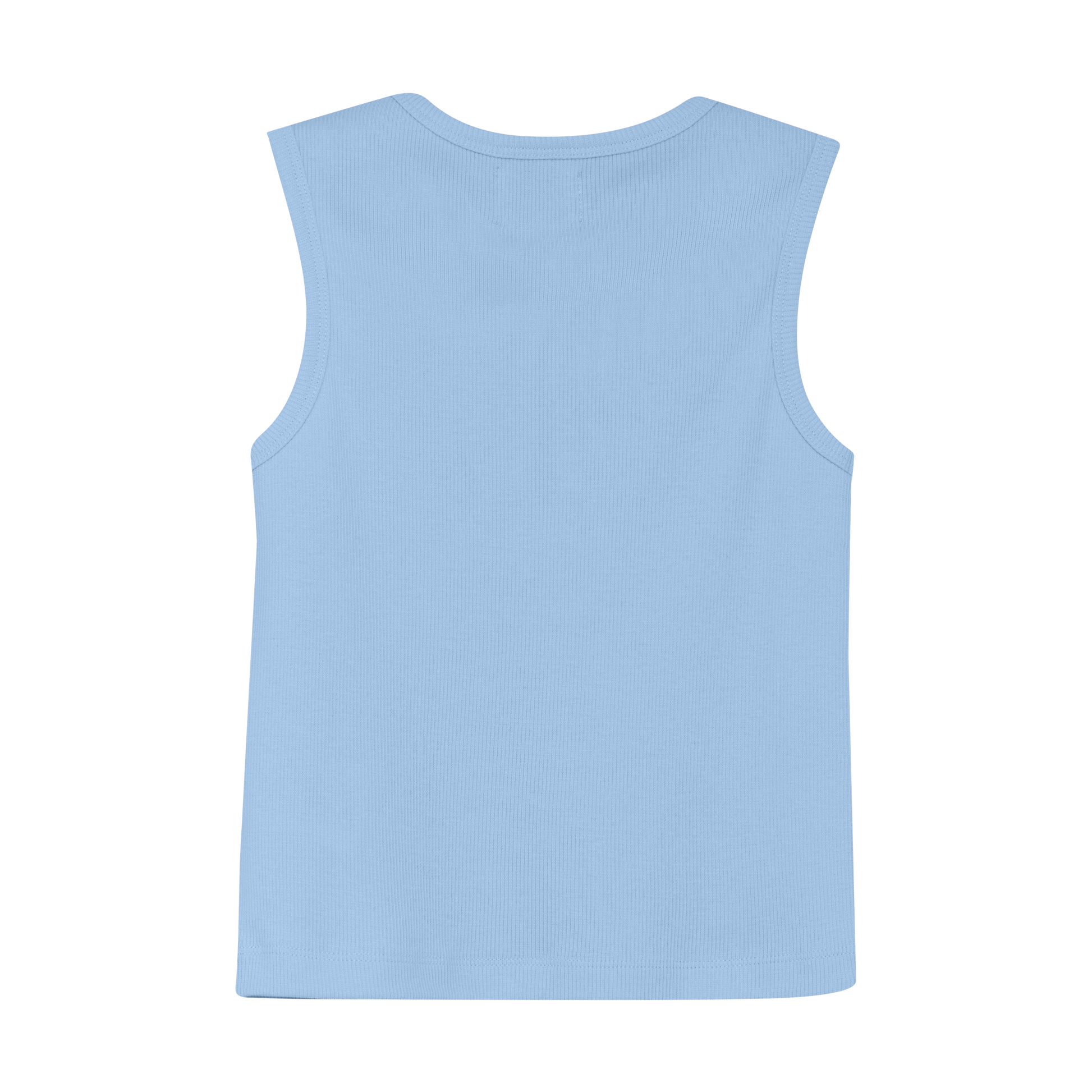 Dieses ärmellose Shirt aus fein gerippter Qualität ist ein echtes Lieblingsstück für jeden Tag. Das weiche, anschmiegsame Material liegt sanft auf der Haut und schenkt kleinen Entdecker:innen maximale Bewegungsfreiheit – ganz gleich, ob beim Spielen, Toben oder Kuscheln.