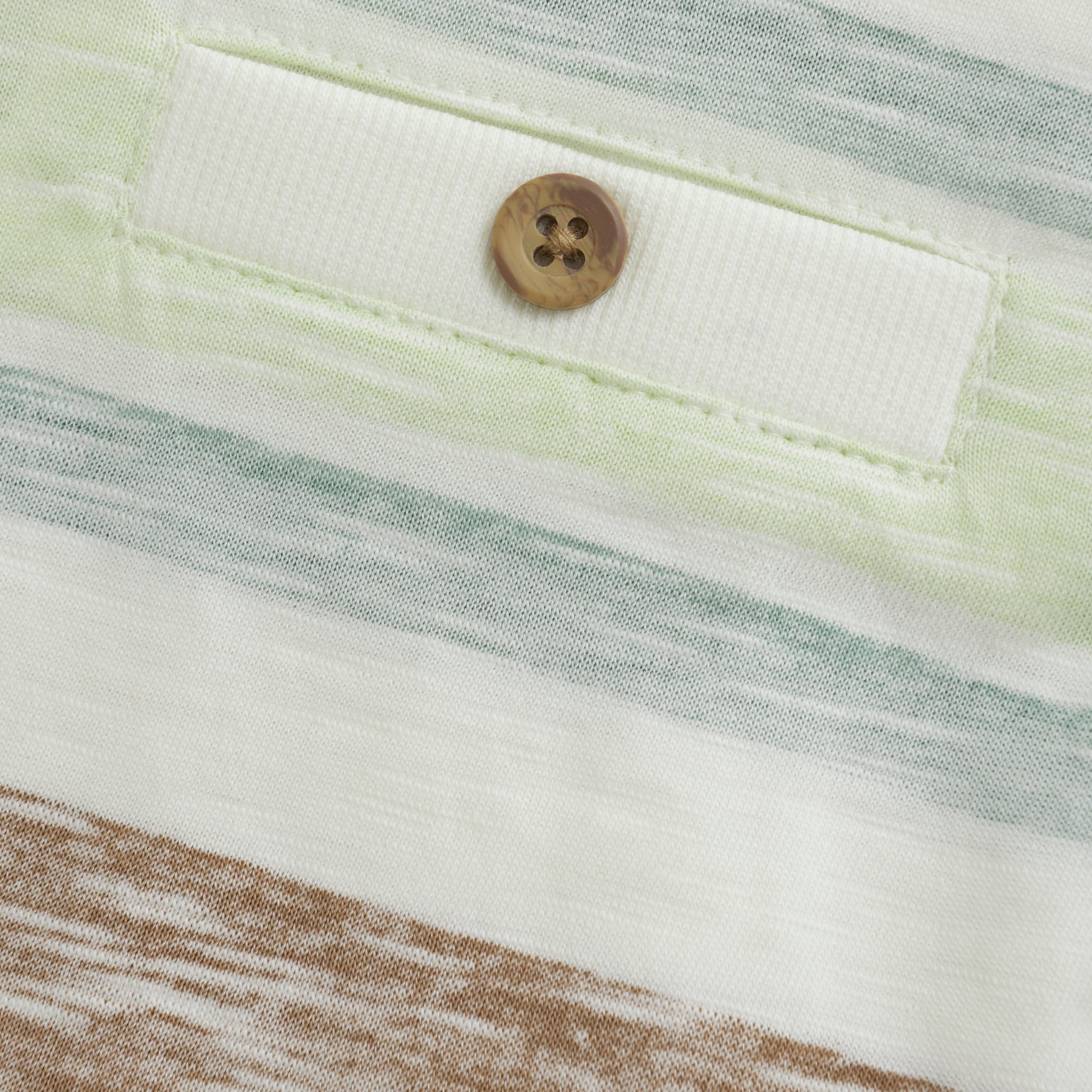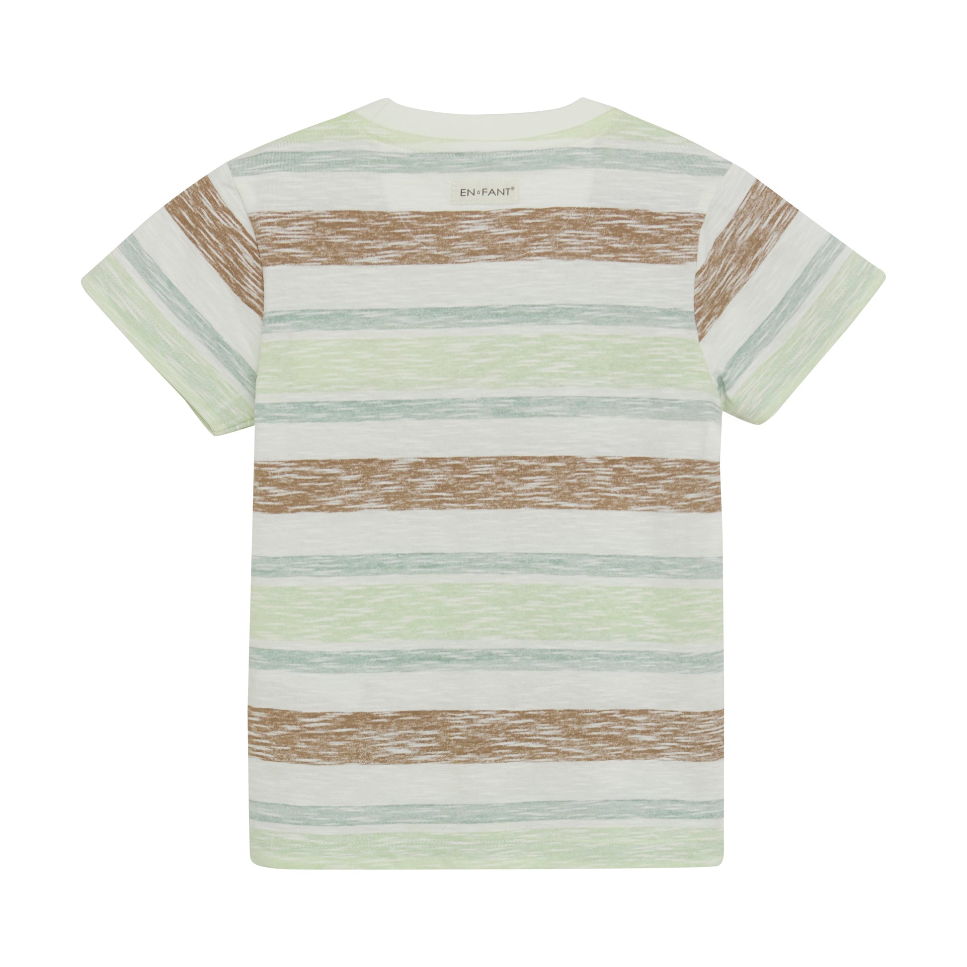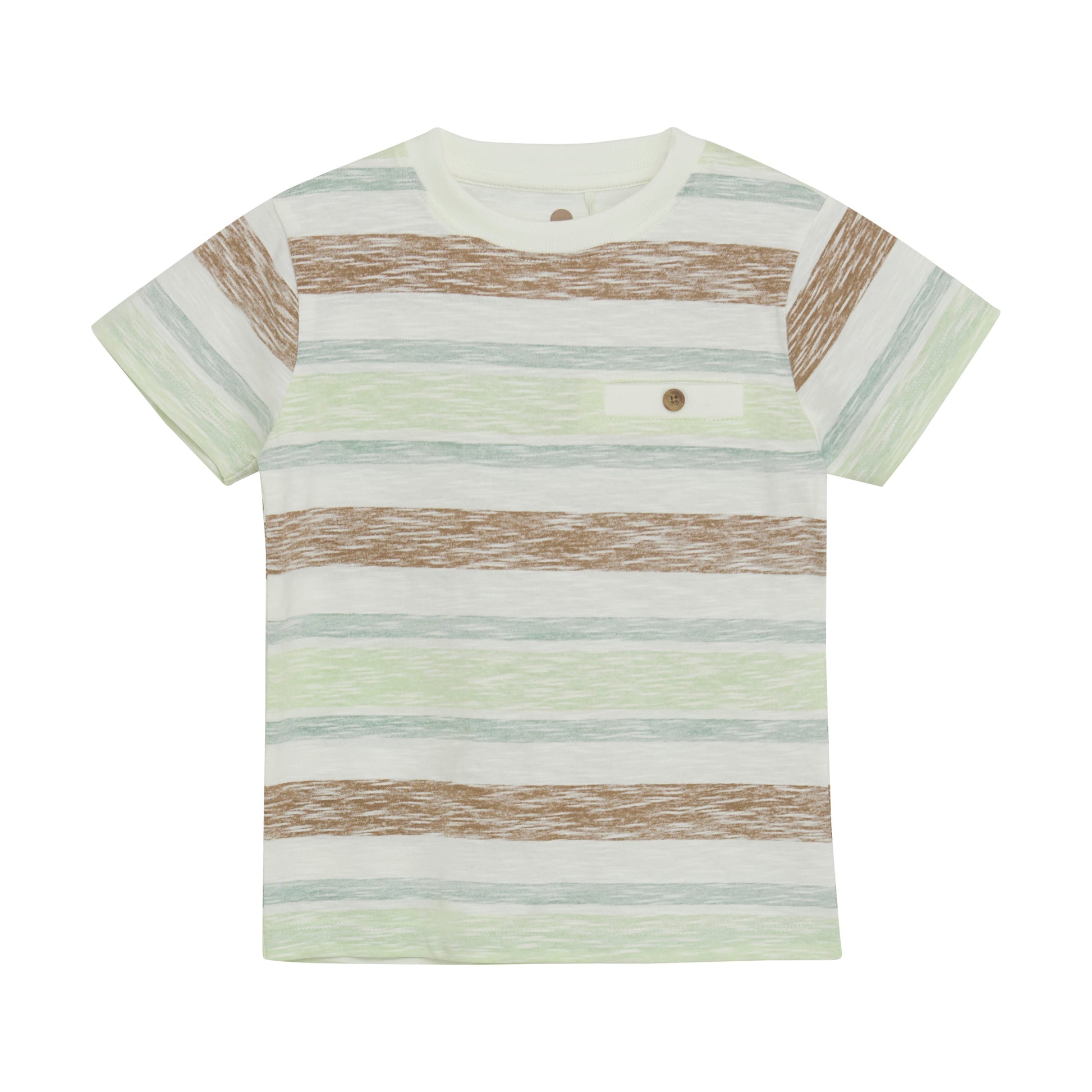 Dieses gestreifte T-Shirt überzeugt mit einem zeitlosen Design in sanften Naturtönen. Die weiche Bio-Baumwolle sorgt für hohen Tragekomfort – perfekt für aktive Jungs, die sich den ganzen Tag frei bewegen möchten. Das dezente Knopfdetail auf der Brust rundet den Look stilvoll ab. Ideal für Alltag, Spiel und Freizeit.