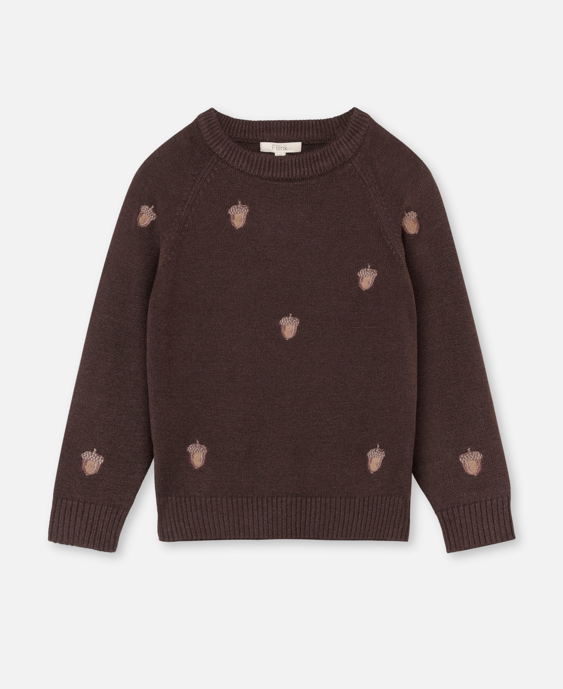 Ein Pullover wie ein Spaziergang durch den Herbstwald! Dieser Pullover von Fliink verzaubert mit seinem feinen Strick und kleinen gestickten Eicheln, die wie zufällig auf dem Stoff verteilt sind – ein verspieltes, aber stilvolles Detail, das Kinder und Eltern gleichermaßen begeistert.