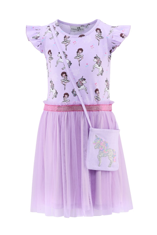 Ein wahrer Traum für kleine Einhorn-Fans: Das Happy Girls Kleid in zartem Flieder begeistert mit einem magischen Einhorn-Motiv auf dem Oberteil. Der weiche Tüllrock in Flieder sorgt für eine verspielte und schwingende Silhouette, während der funkelnde Glitzerbund dem Kleid einen besonderen Glanz verleiht.