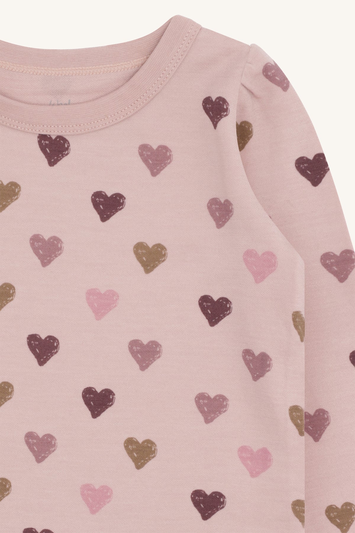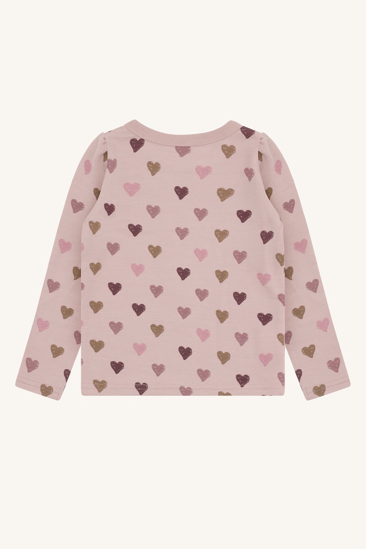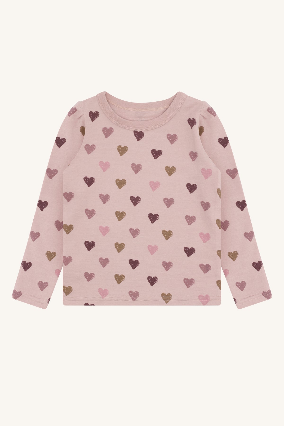 Dieses weiche Langarmshirt ist ein echtes Lieblingsstück für kleine Entdeckerinnen. Das zarte Rosa und das liebevoll gestaltete Herzchenmuster in warmen Tönen machen es zu einem wunderschönen Hingucker im Alltag.