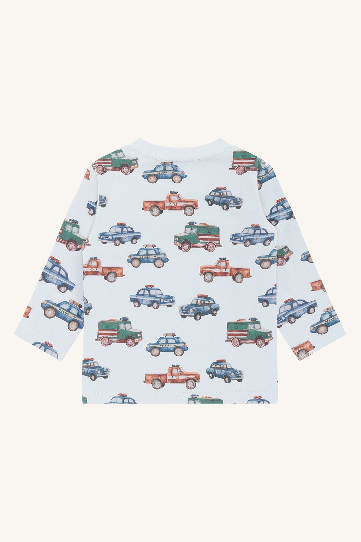 Dieses Langarmshirt bringt mit seinem detailreichen Allover-Print von bunten Autos jede Menge gute Laune in den Alltag. Auf dem hellblauen Grund kommen die Fahrzeuge in Blau-, Grün- und Rosttönen besonders schön zur Geltung. Das weiche Material sorgt für angenehmen Tragekomfort und macht das Shirt zu einem praktischen wie auch fröhlichen Lieblingsteil für kleine Autofans.