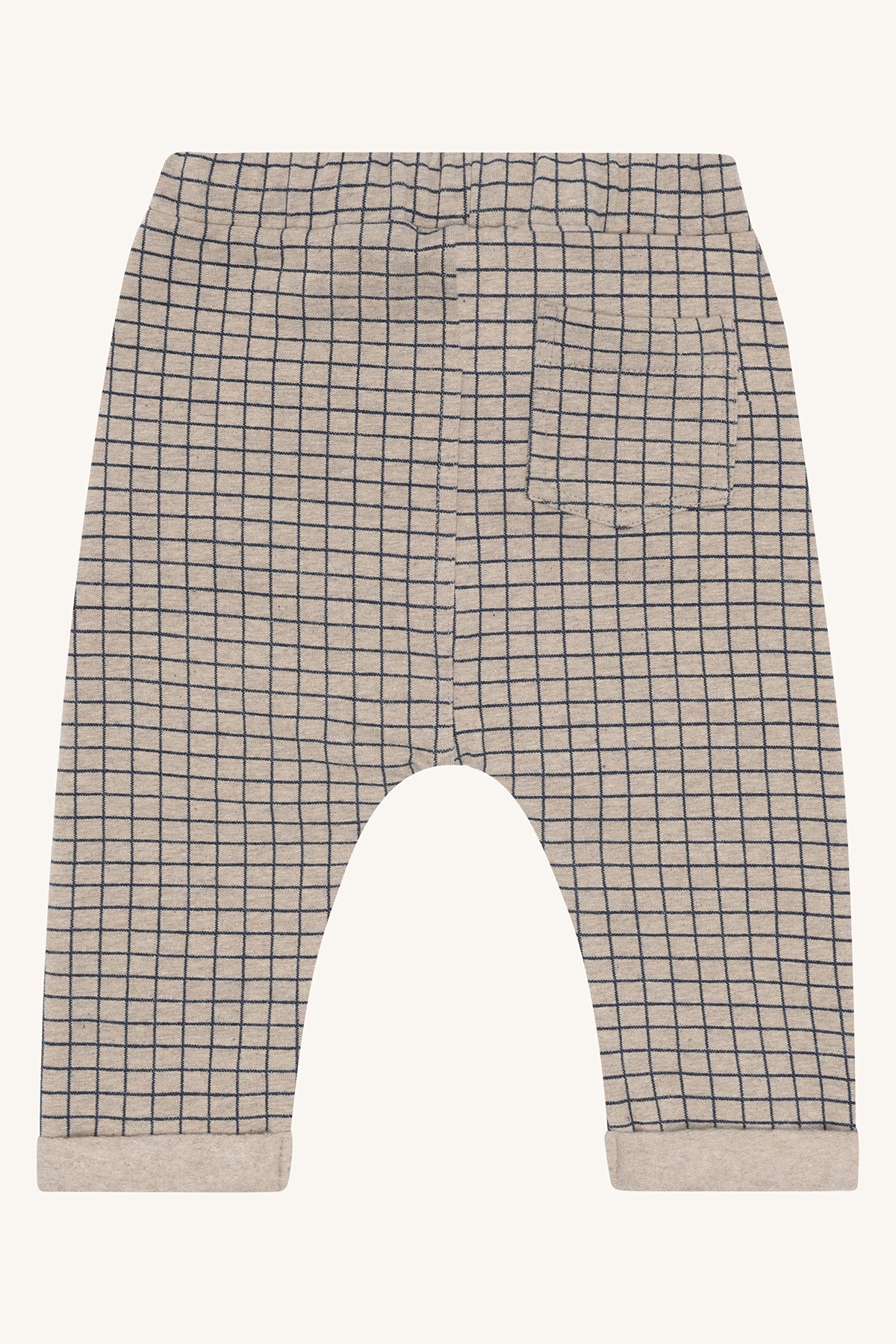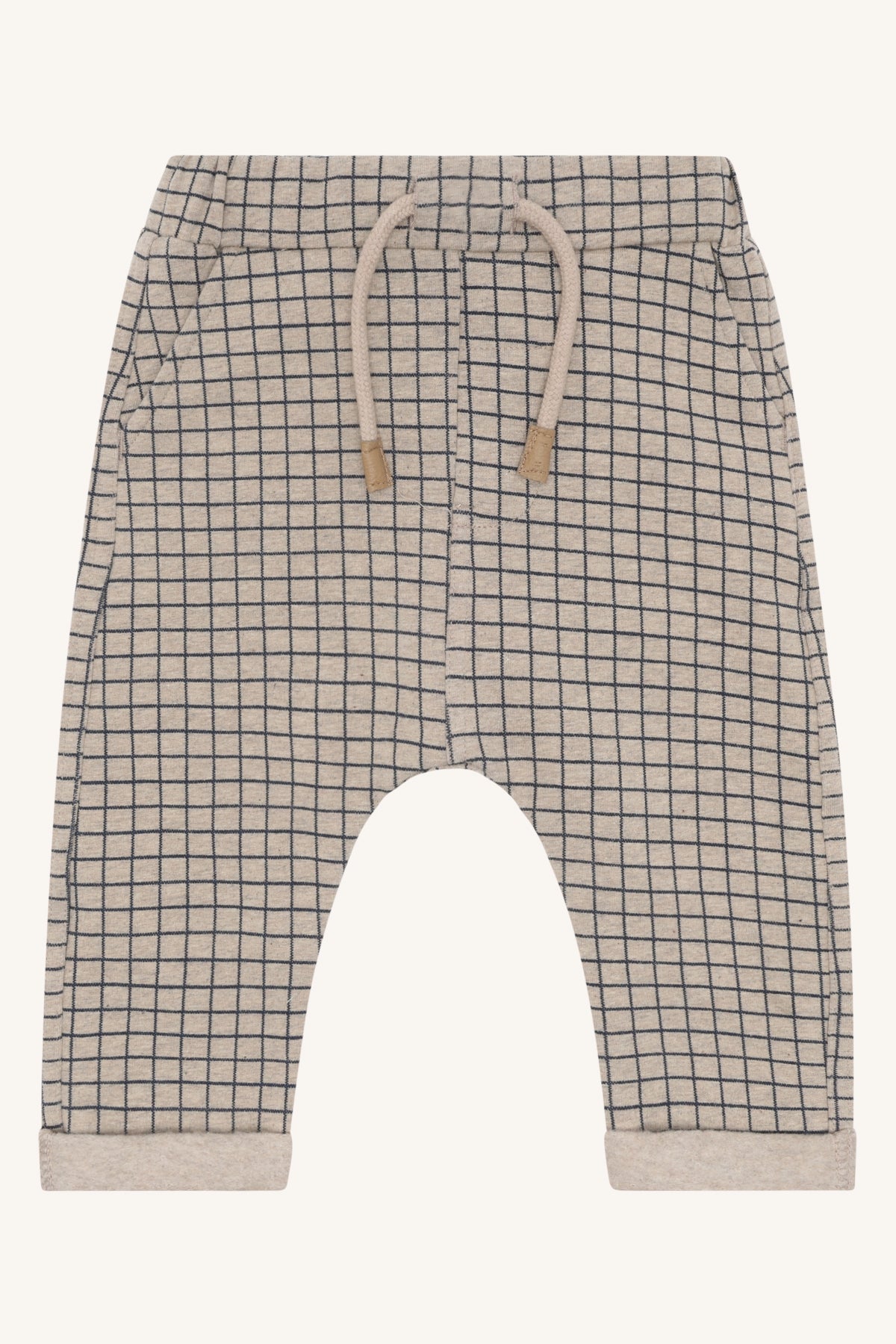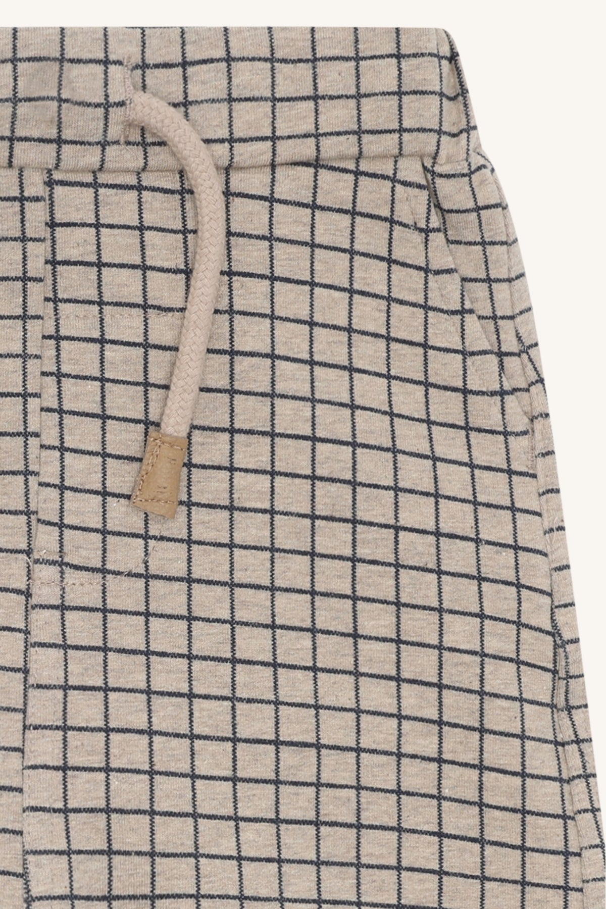 Diese bequeme Hose ist ein echter Allrounder für Spiel und Freizeit. Hergestellt aus einem weichen und kuscheligen Stoff mit einem modernen Karomuster in Beige und Dunkelblau, bietet sie optimalen Tragekomfort für den ganzen Tag.