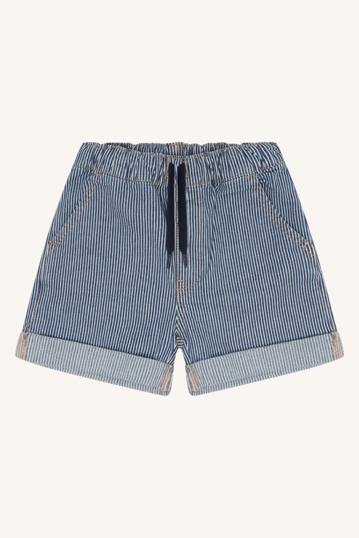 Diese leichte gestreifte Shorts bringt sofort maritimes Sommerfeeling in die Garderobe! Die feinen Blue-Stripe-Streifen wirken frisch, klassisch und wunderbar zeitlos – perfekt für warme Tage am Strand, im Garten oder auf kleinen Entdeckungstouren.