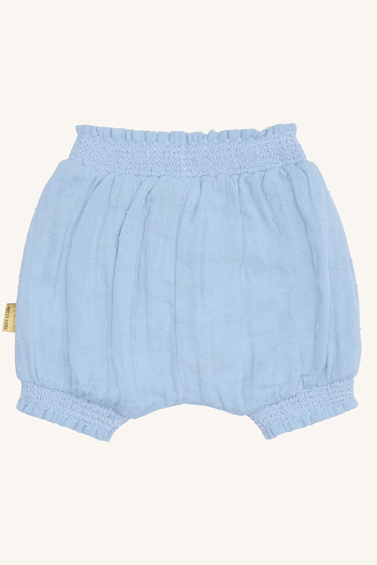 Die liebevolle Smokstickerei an der Taille und an den Hosenbeinen verleiht den Shorts einen besonderen, verspielten Charme. Der bequeme, elastische Bund sorgt für eine tolle Passform und einfaches Anziehen.