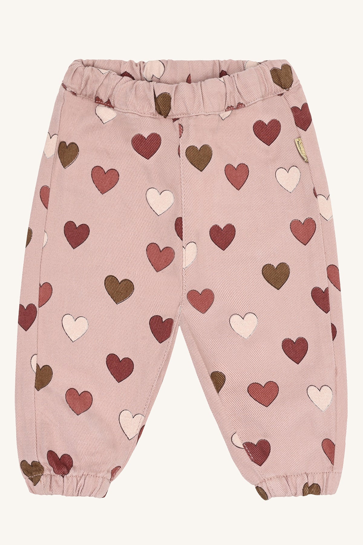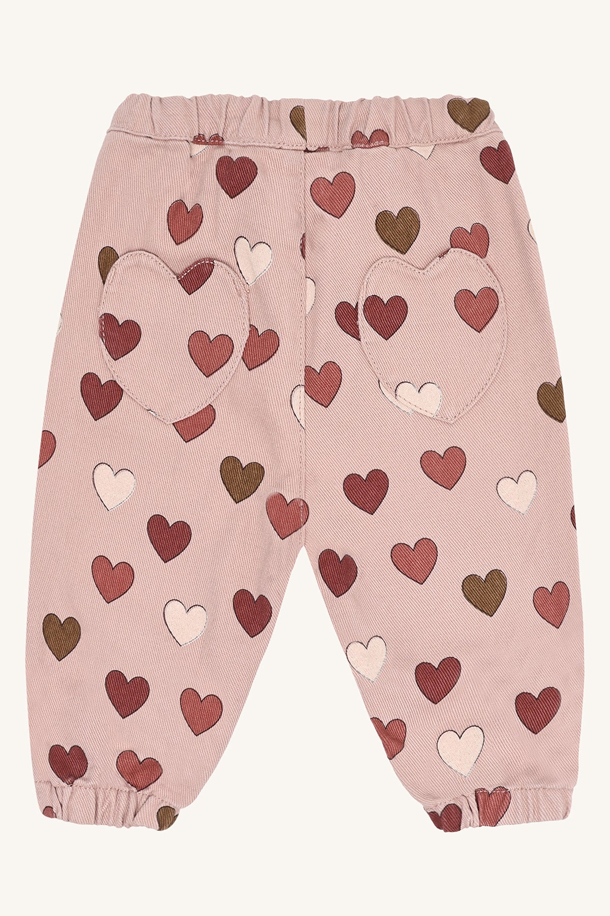 Diese bezaubernde Hose bringt gute Laune in jeden Kinderkleiderschrank. Das fröhliche Herzmuster ist ein echter Blickfang und verleiht der Hose eine verspielte Note – perfekt für kleine Modefans.