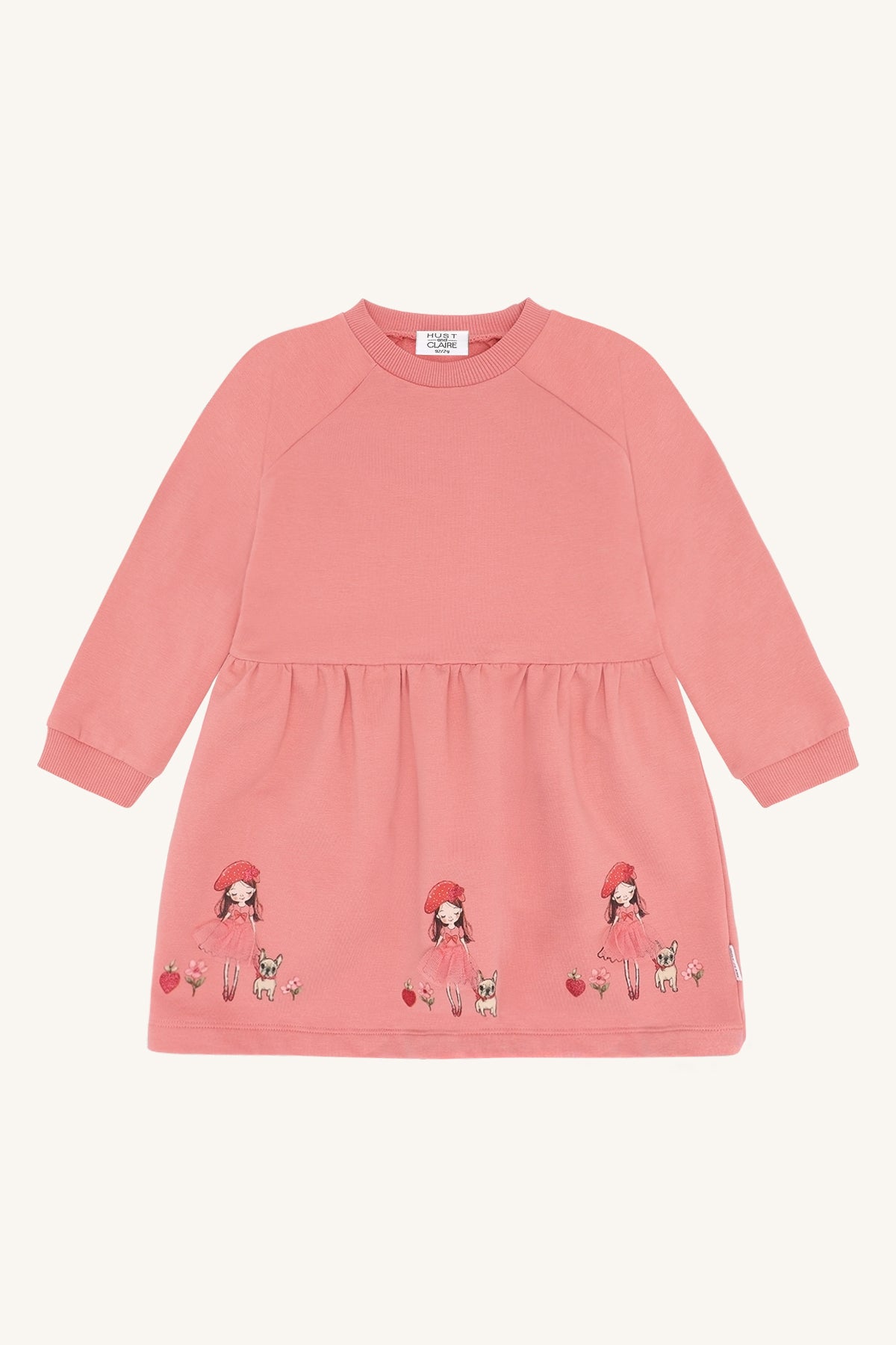 Ein Kleid wie ein kleiner Paris-Traum! Dieses süße Sweatkleid verzaubert mit seinen liebevollen French-Girl Stickereien: kleine Mädchen mit rotem Barett, zarte Blümchen und niedliche Hündchen – alles fein platziert entlang des Saums und einfach zum Dahinschmelzen. 🥰✨