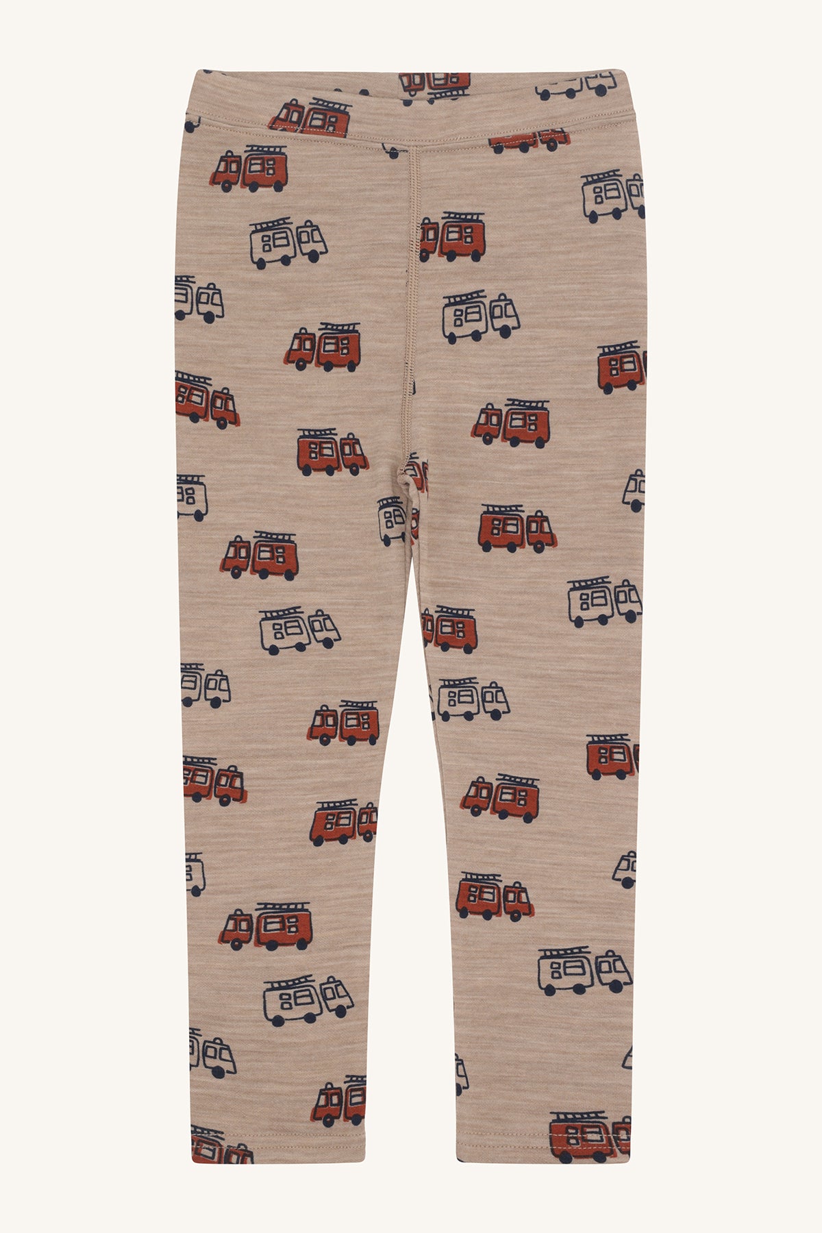 Diese gemütliche Leggings begeistert kleine Feuerwehr-Fans mit ihrem liebevoll gestalteten Allover-Print aus roten und blauen Feuerwehrautos auf einem warmen Beigeton. Sie ist ideal für abenteuerliche Tage, wilde Spielstunden oder einfach zum Wohlfühlen daheim.