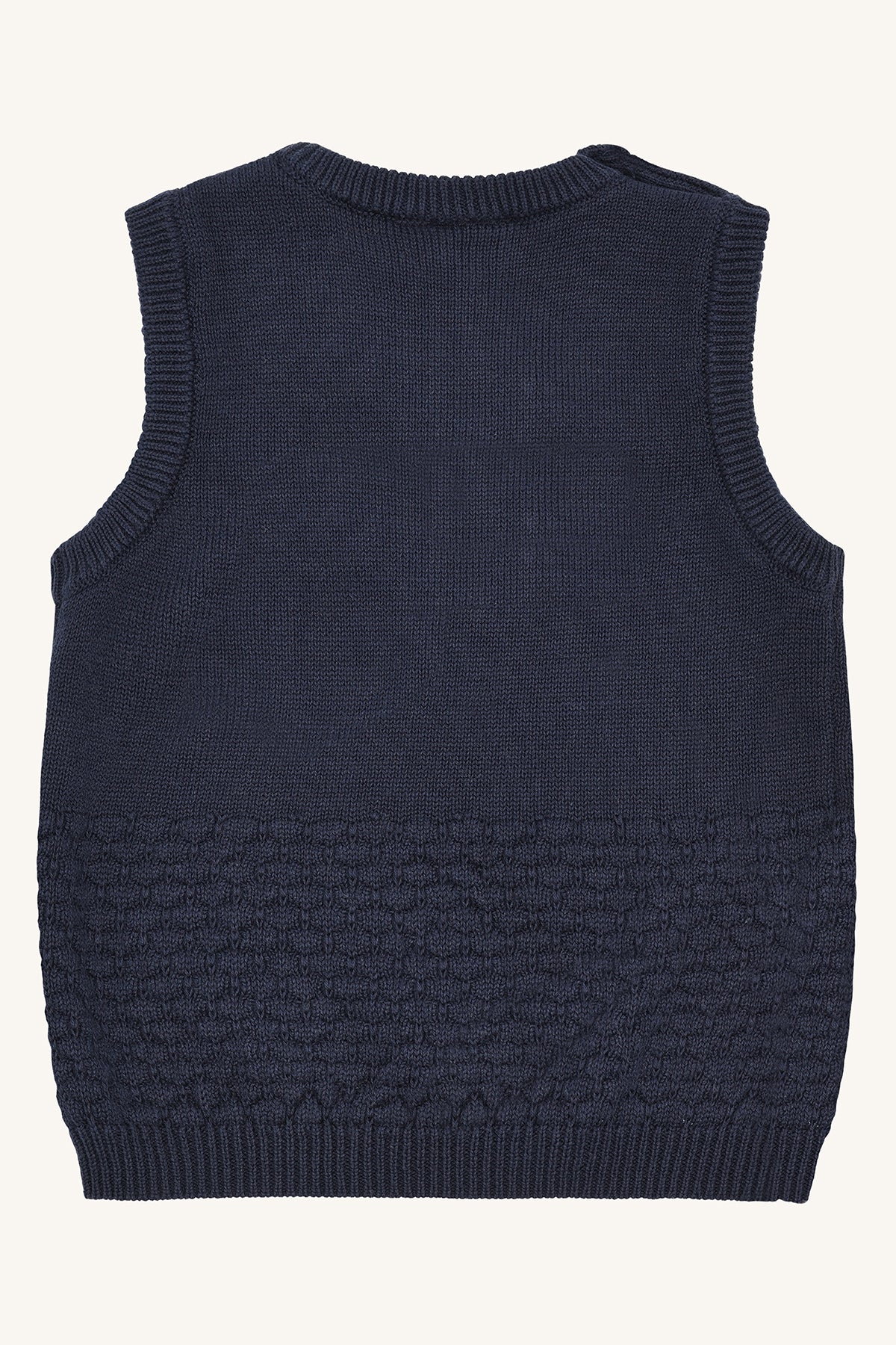 Der Rundhalsausschnitt und die seitlichen Knöpfe an der Schulter erleichtern das An- und Ausziehen. Der Pullunder lässt sich hervorragend über Hemden, Langarmshirts oder Pullover ziehen und bietet eine zusätzliche Schicht Wärme, ohne die Bewegungsfreiheit einzuschränken. Ein vielseitiges Stück, das zu vielen Anlässen getragen werden kann.