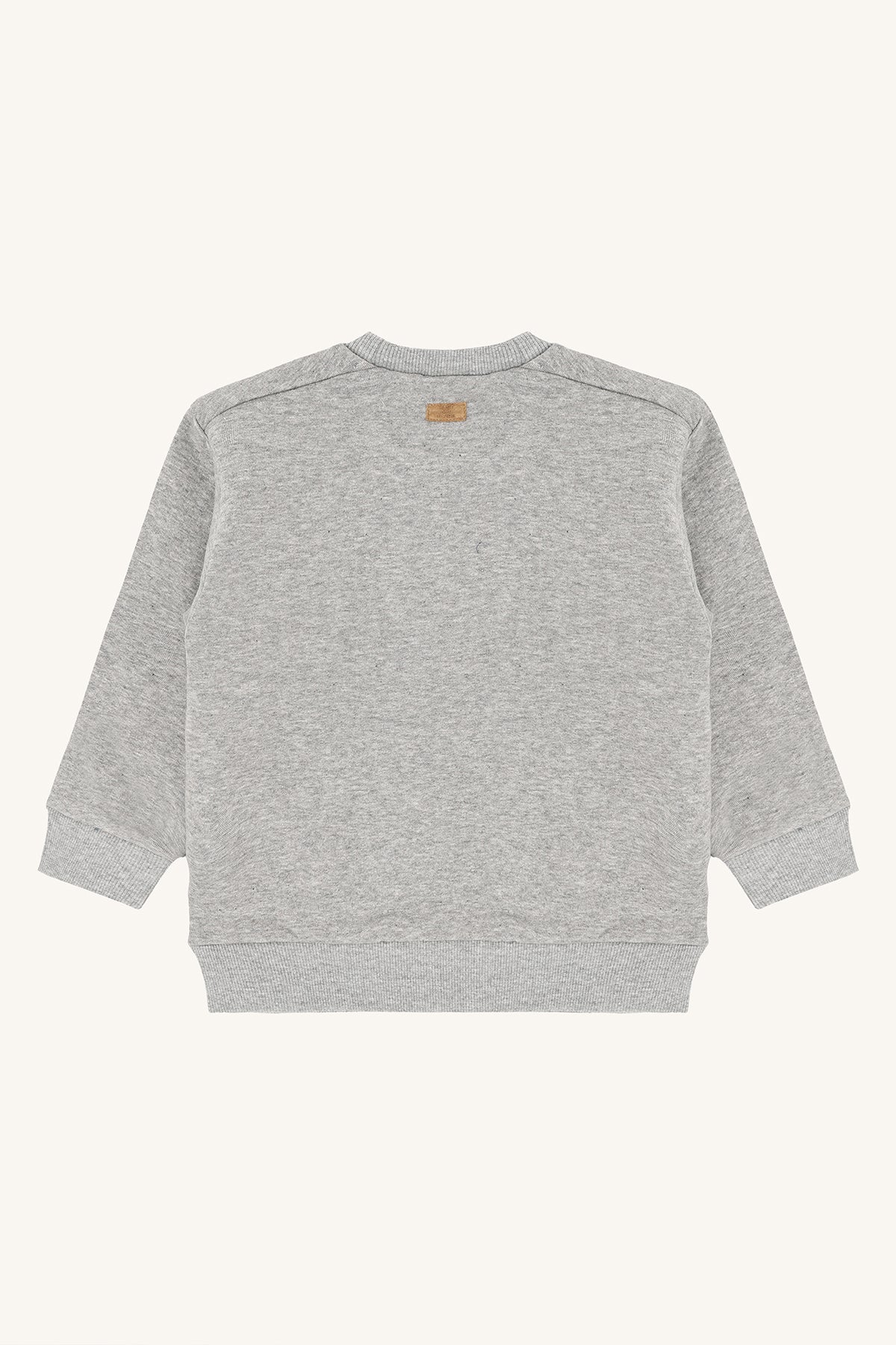 Dieser graue Sweatpullover kombiniert Gemütlichkeit mit einem coolen Look. Highlight ist der große Frontprint eines Leoparden, der mit einer gestrickten Mütze ausgestattet ist – ein detailreiches Motiv, das sofort ins Auge fällt und Kindern garantiert gefällt.