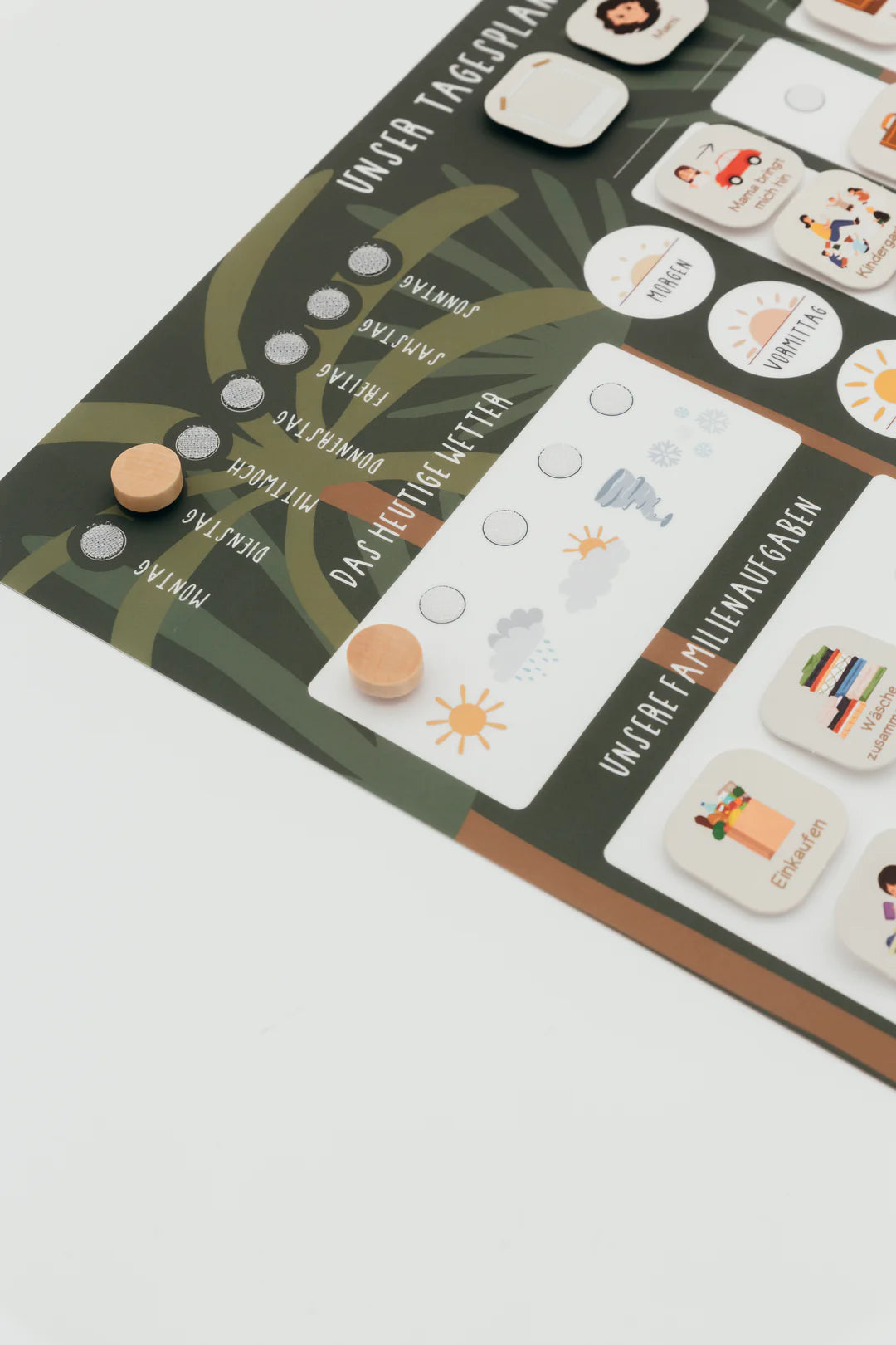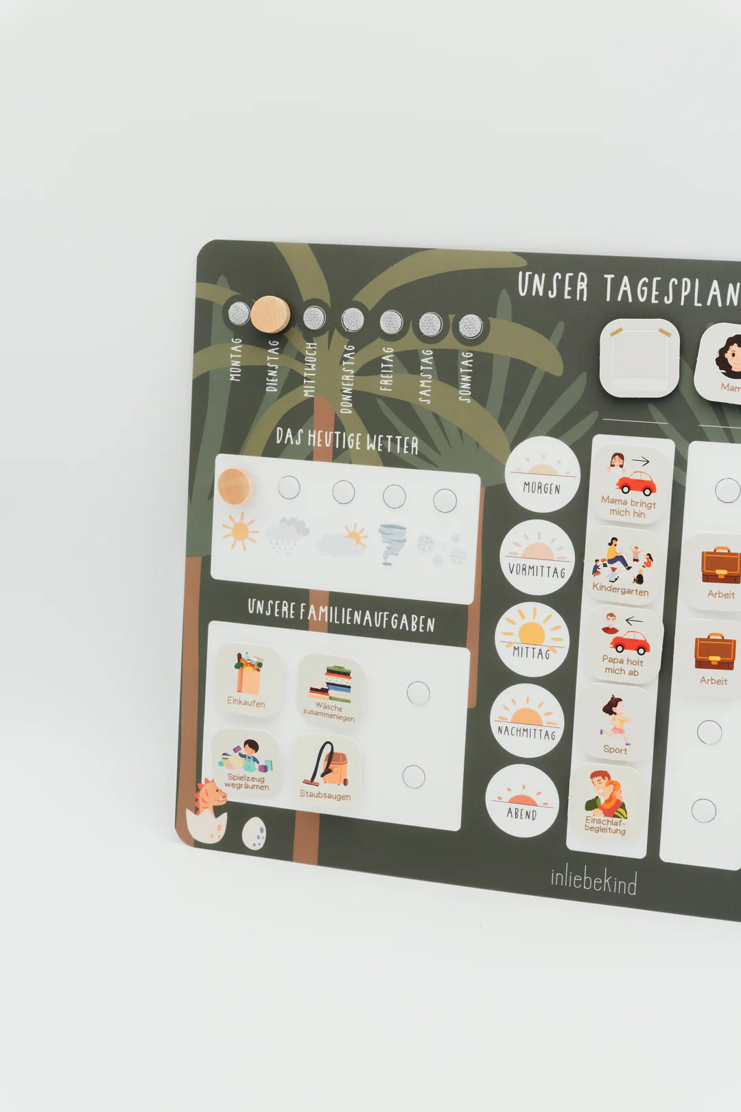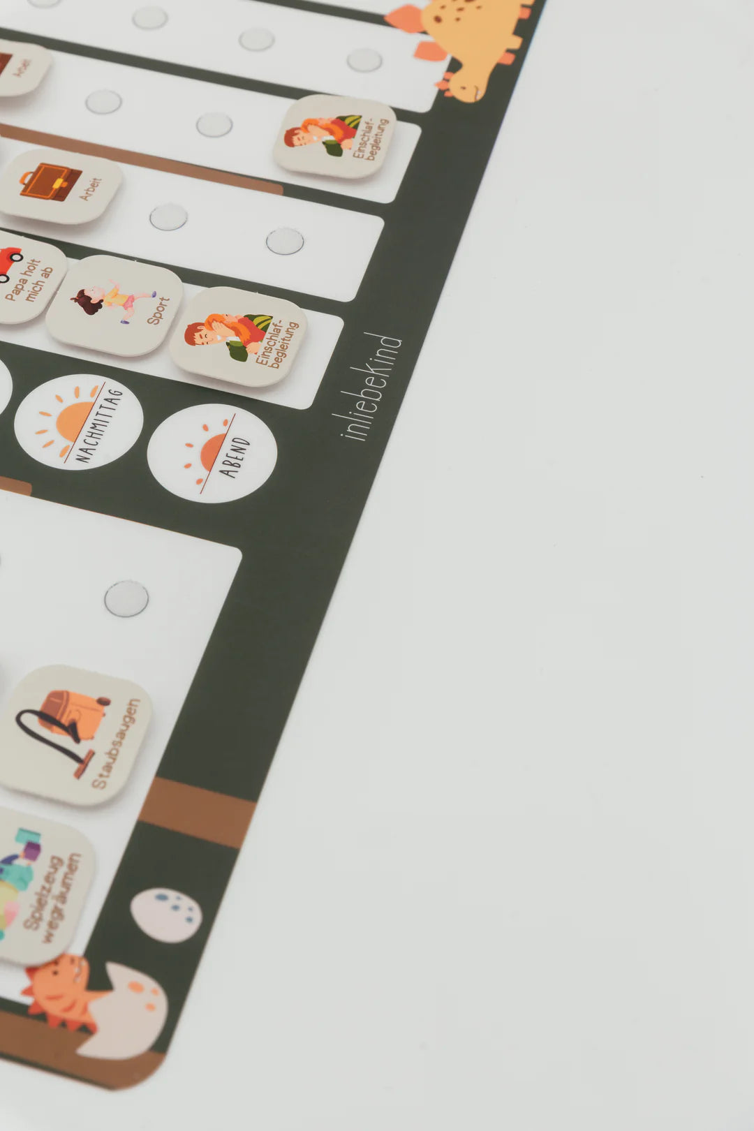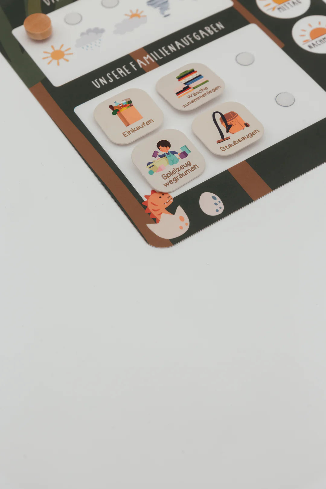 Der Familien-Tagesplaner bringt Ordnung und Leichtigkeit in den Alltag – hier im coolen Dino-Design. Kindgerecht, übersichtlich und flexibel – ideal für bis zu fünf Familienmitglieder, egal ob Eltern mit Kindern oder ganz individuell.