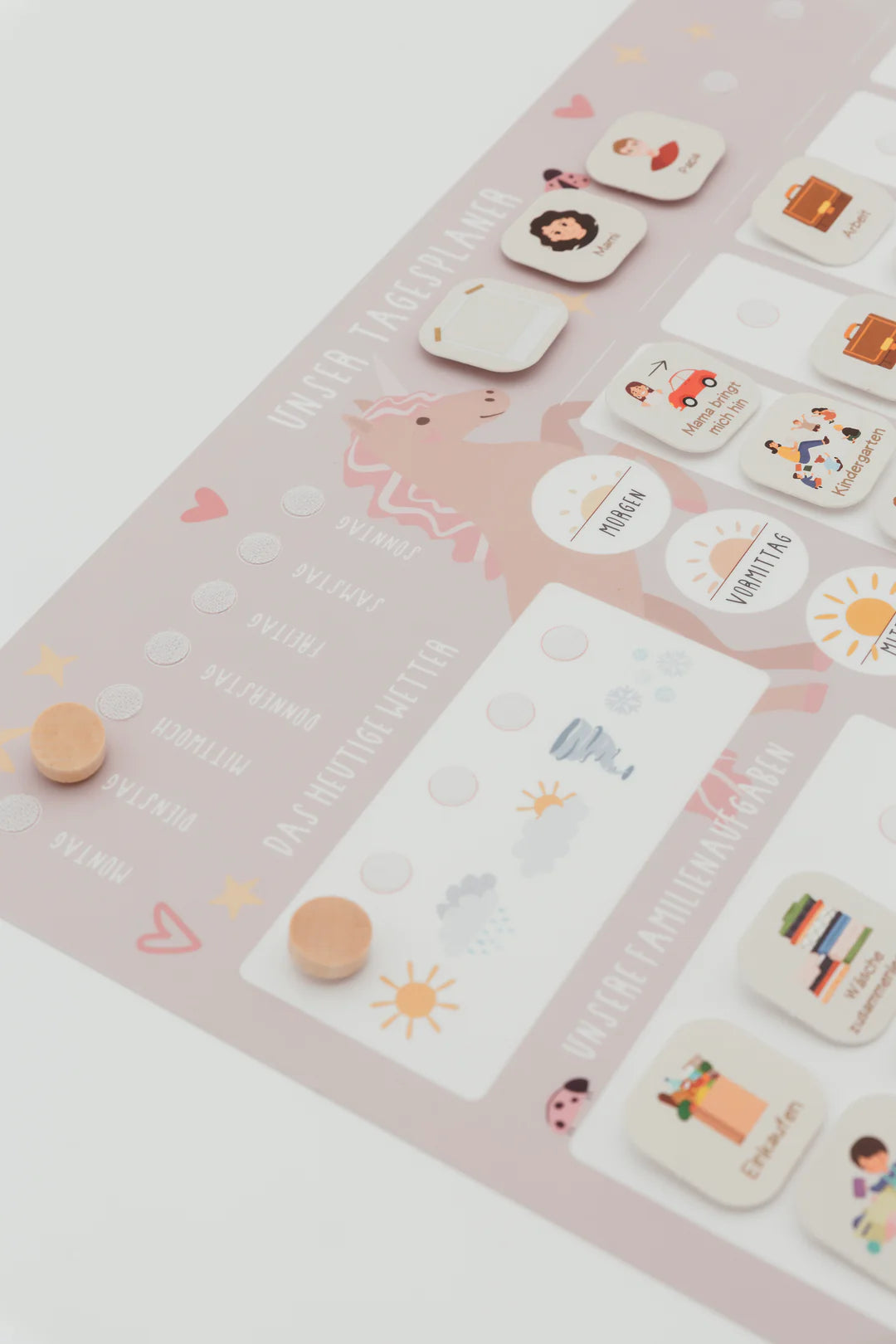 Der Familien-Tagesplaner bringt Ordnung und Leichtigkeit in den Alltag – liebevoll gestaltet im zauberhaften Einhorn-Design. Kindgerecht, übersichtlich und flexibel – ideal für bis zu fünf Familienmitglieder, egal ob Eltern mit Kindern oder ganz individuell.