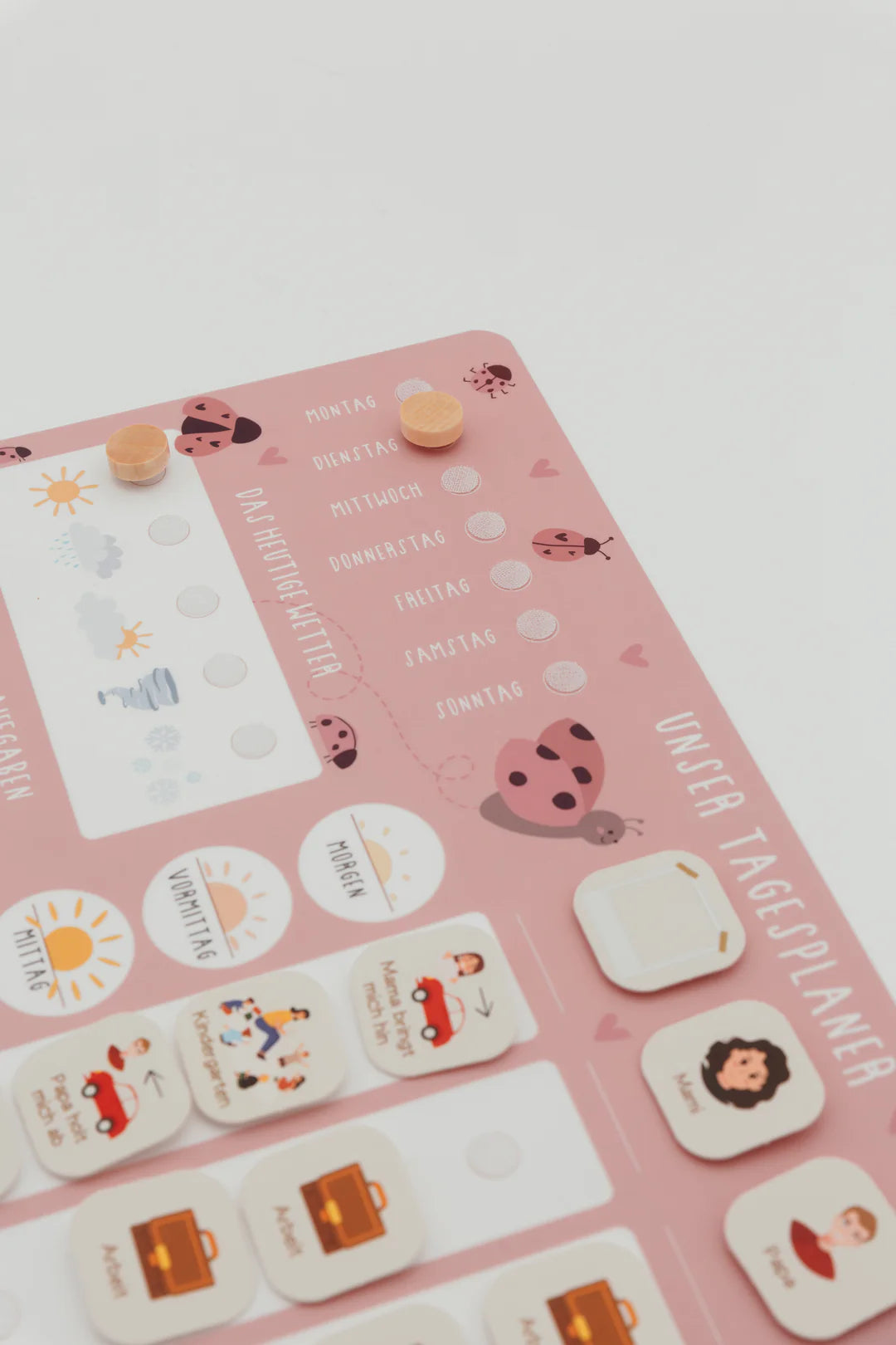 Der Familien-Tagesplaner bringt Ordnung und Leichtigkeit in den Alltag – liebevoll gestaltet im fröhlichen Marienkäfer-Design. Kindgerecht, übersichtlich und flexibel – ideal für bis zu fünf Familienmitglieder, egal ob Eltern mit Kindern oder ganz individuell.