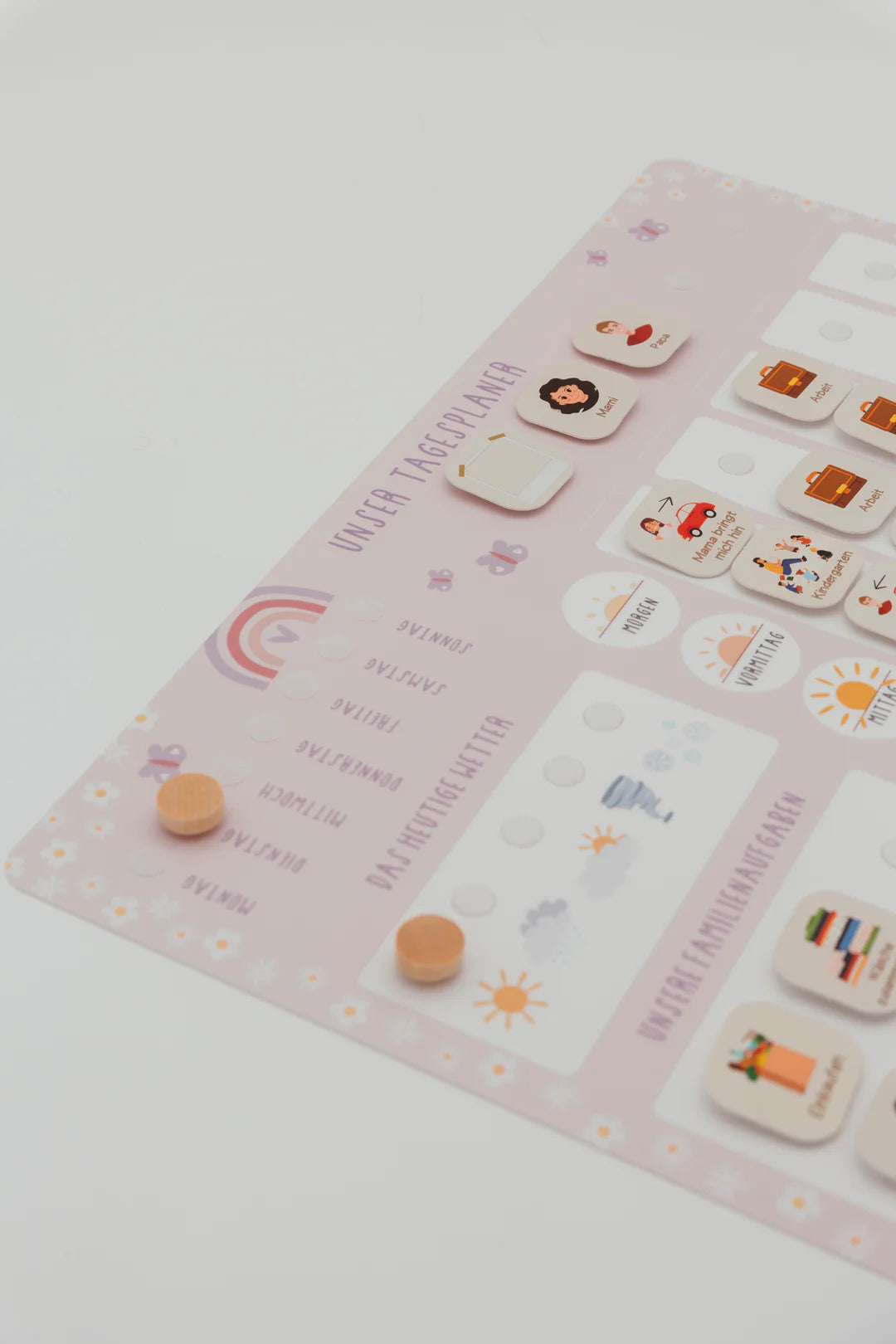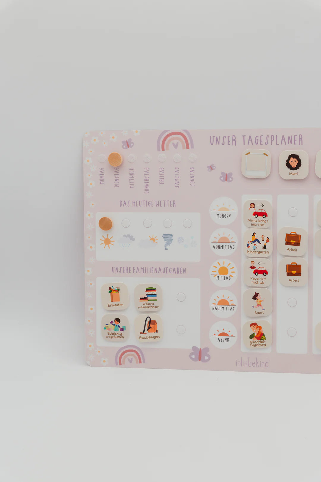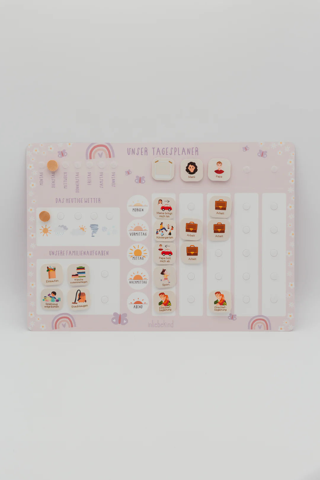 Der Familien-Tagesplaner bringt Ordnung und Leichtigkeit in den Alltag – liebevoll gestaltet im fröhlichen Regenbogen-Design. Kindgerecht, übersichtlich und flexibel – ideal für bis zu fünf Familienmitglieder, egal ob Eltern mit Kindern oder ganz individuell.