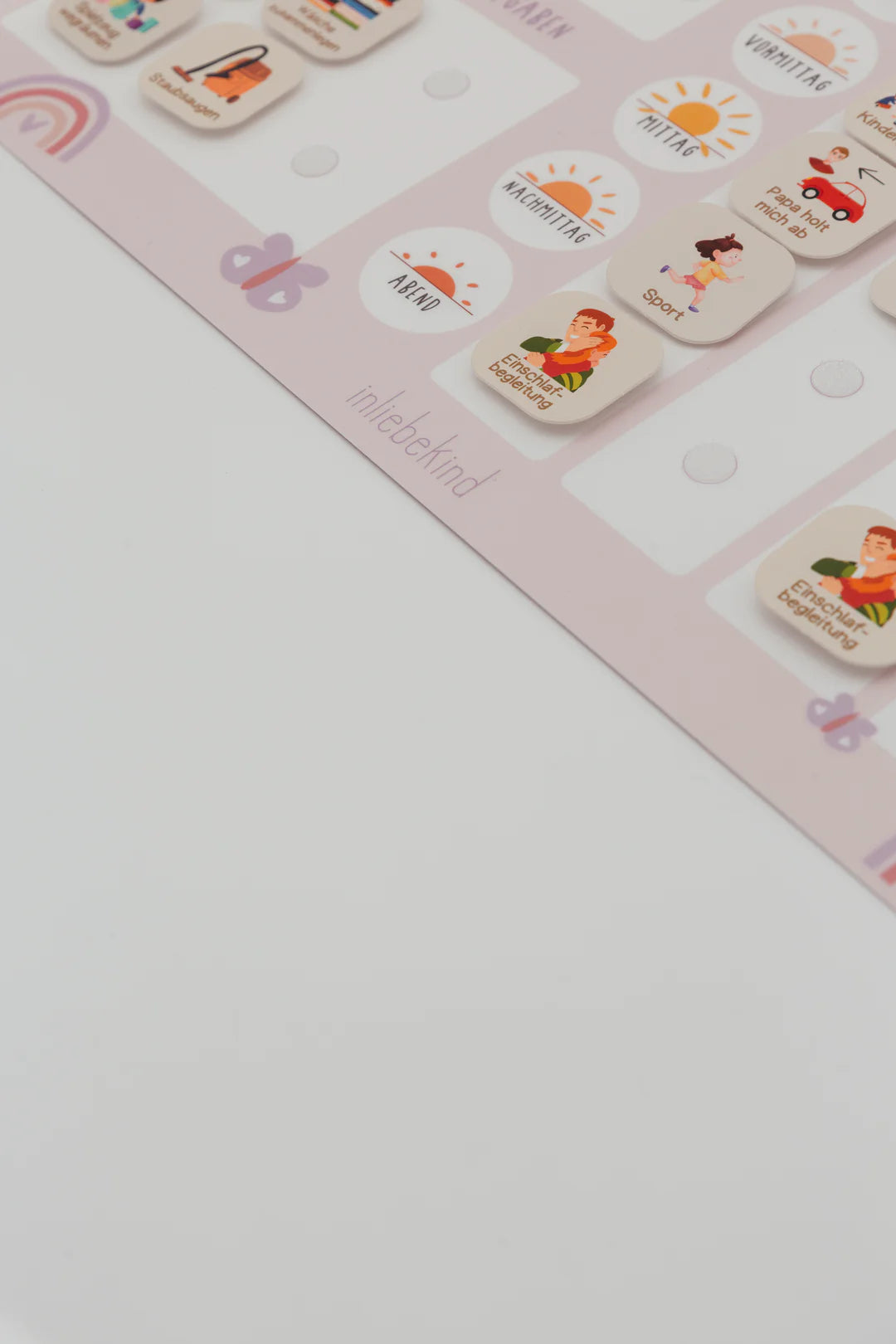 - Kindgerechte Symbole und Kärtchen – farbenfroh, klar und leicht verständlich