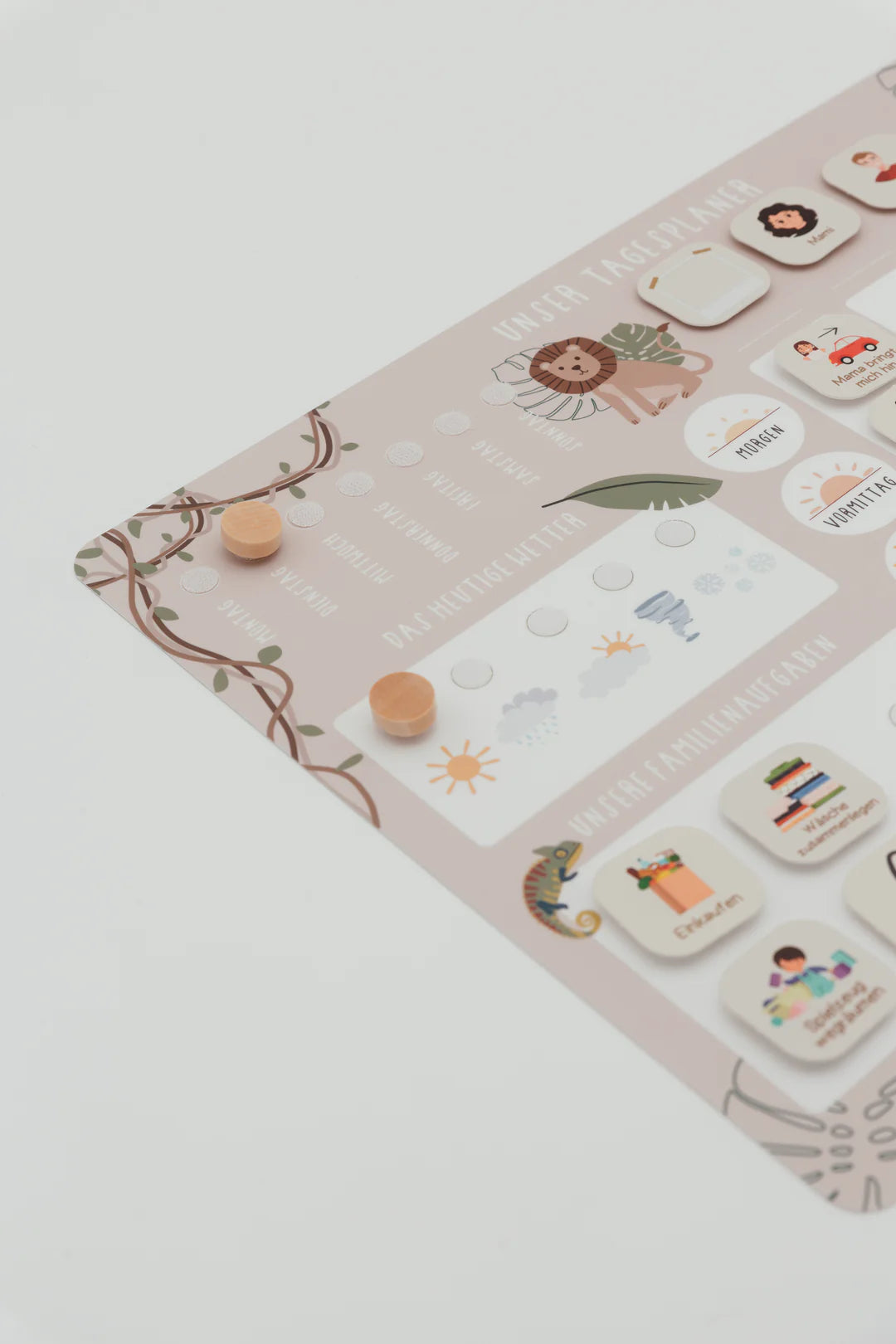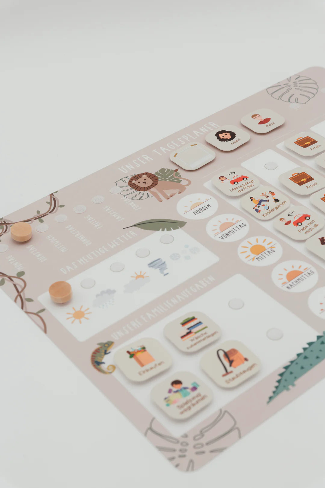 Der Familien-Tagesplaner bringt Ordnung und Leichtigkeit in den Alltag – liebevoll gestaltet im abenteuerlichen Safari-Design. Kindgerecht, übersichtlich und flexibel – ideal für bis zu fünf Familienmitglieder, egal ob Eltern mit Kindern oder ganz individuell.