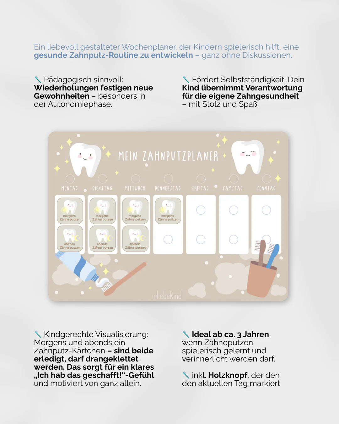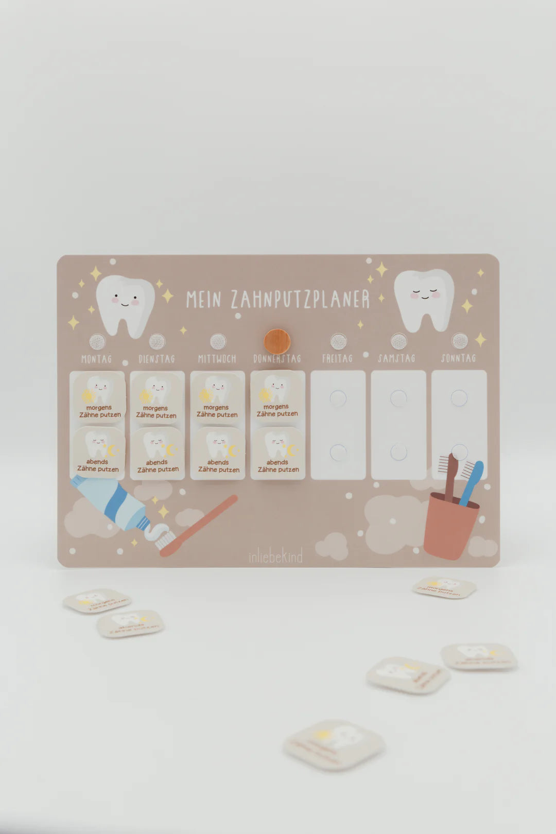 Mit dem liebevoll gestalteten Zahnputzplaner von inliebekind wird aus dem täglichen Zähneputzen ein motivierendes Ritual – kindgerecht, spielerisch und mit ganz viel Stolz.