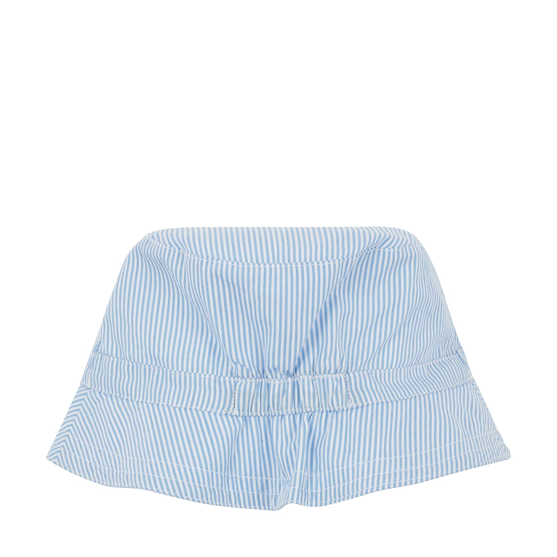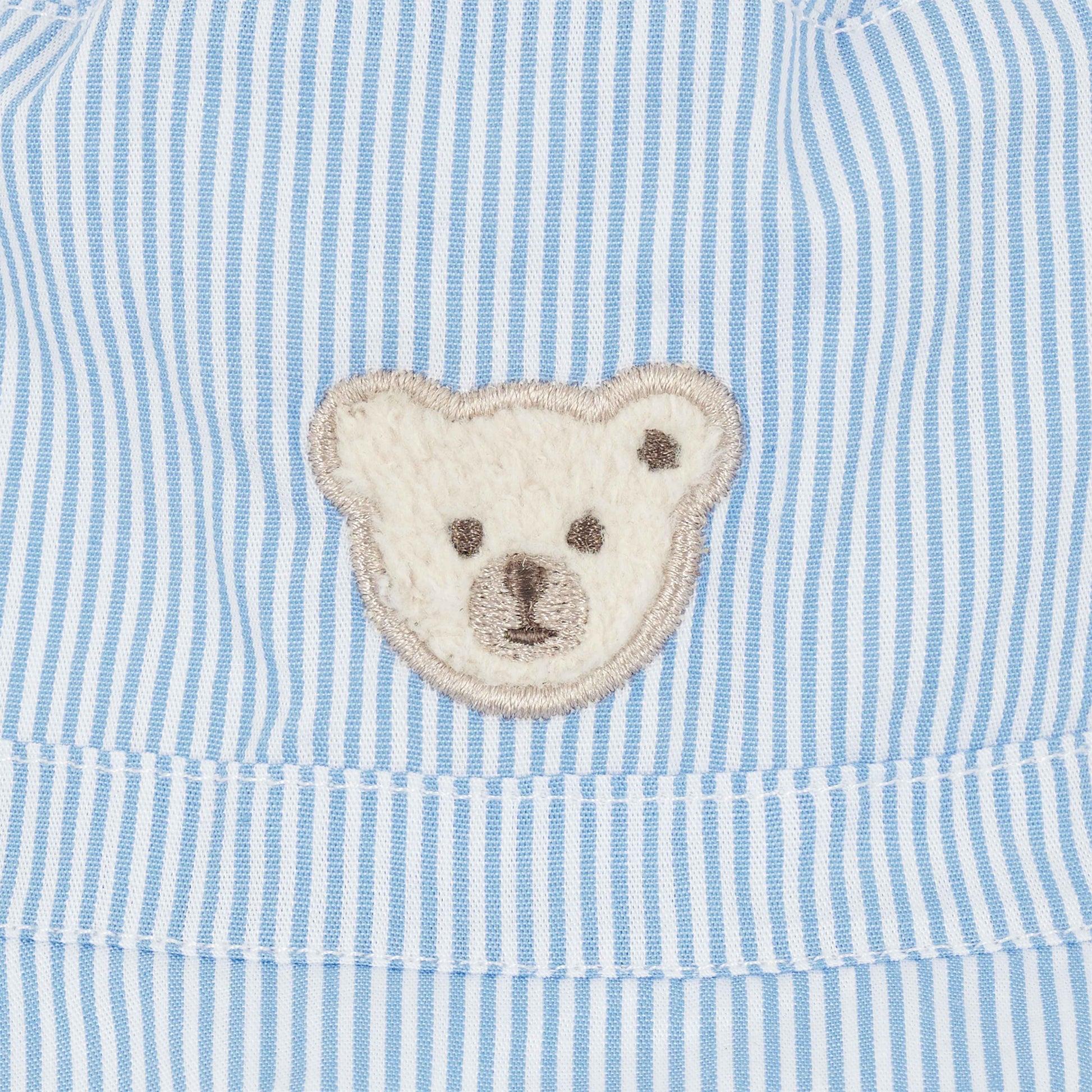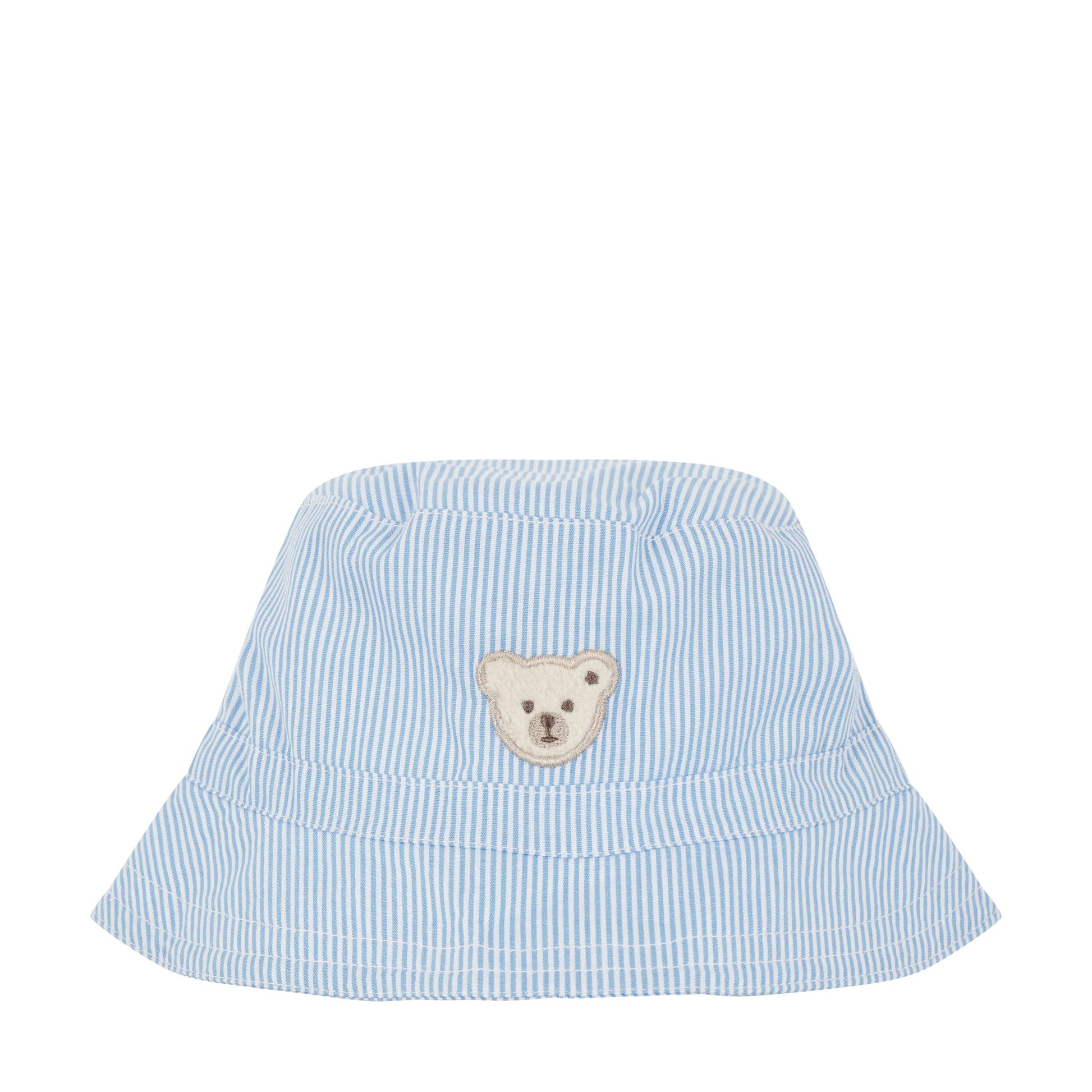 Dieser stilvolle Hut in Blau-Weiß-Streifen ist das perfekte Accessoire für sonnige Tage. Das weiche Futter sorgt für ein angenehmes Tragegefühl, während die breite, leicht verstärkte Krempe optimal vor Sonne schützt. Die charmante Steiff Teddybär-Stickerei auf der Vorderseite zaubert ein Lächeln und verleiht dem Design einen besonderen Akzent. Ein wunderschöner Begleiter für kleine Sonnenschein-Prinzessinnen.