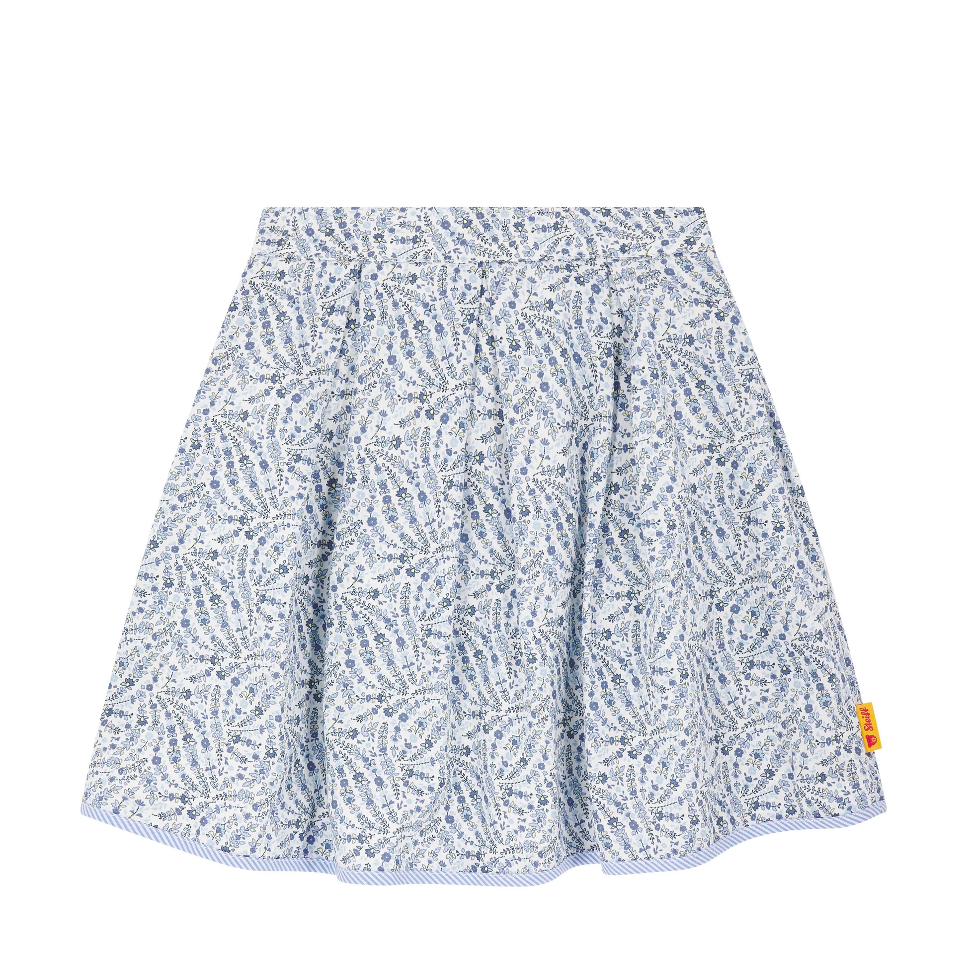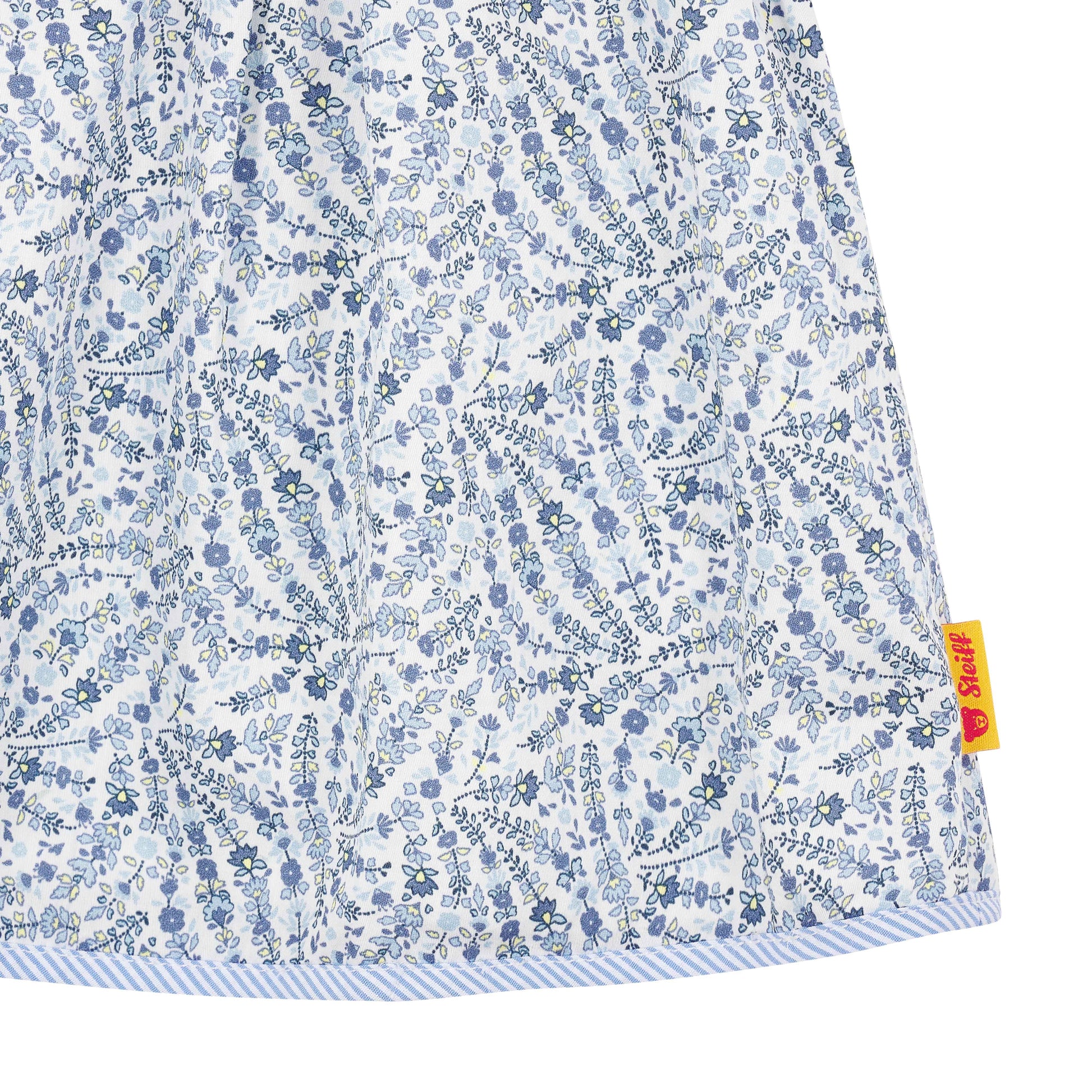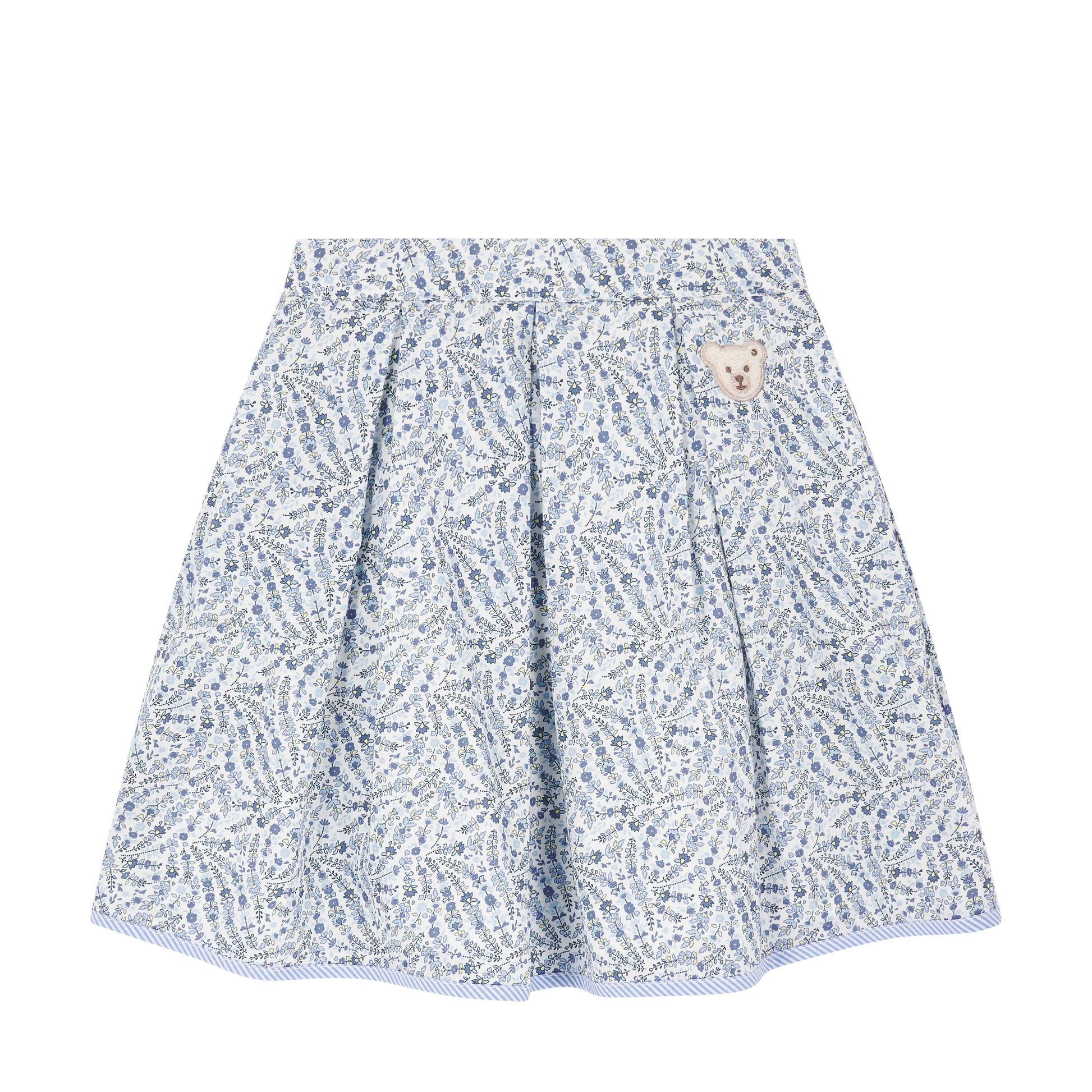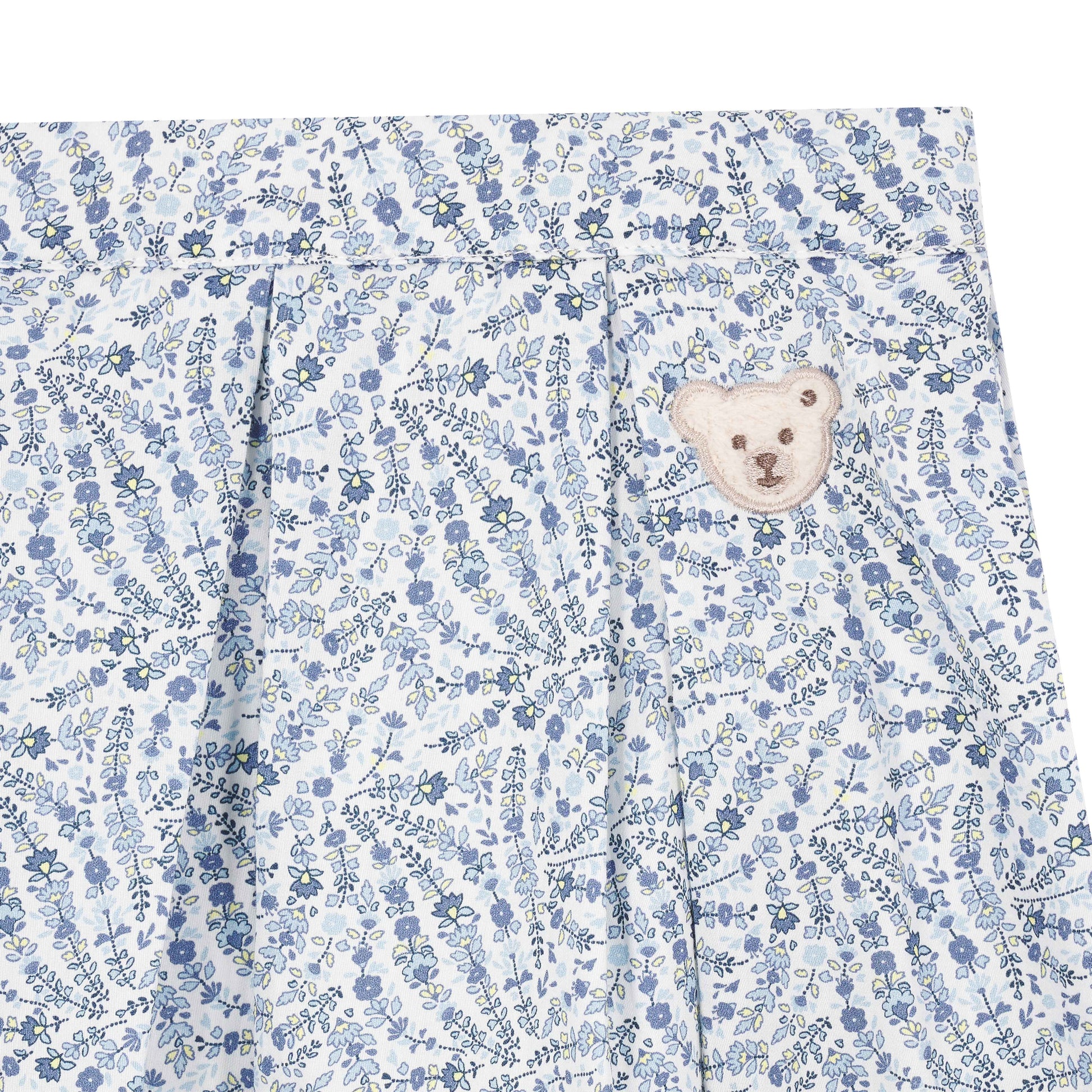 Dieser wunderschöne knielange Rock mit Falten ist ein echter Hingucker für kleine Entdeckerinnen. Gefertigt aus feinem, blau geblümtem Baumwoll-Satin und mit weichem Baumwollfutter ausgestattet, bietet er nicht nur stilvollen Look, sondern auch höchsten Tragekomfort. Ein verdeckter Seitenreißverschluss und ein verstellbarer Gummizug im Bund sorgen dafür, dass sich der Rock ganz einfach anziehen lässt und immer perfekt sitzt. Das gestreifte Band am Saum verleiht einen besonderen Akzent, während das niedliche Steiff Teddybärmotiv für einen liebenswerten Touch sorgt. Ein Lieblingsstück für fröhliche Ausflüge und besondere Anlässe!