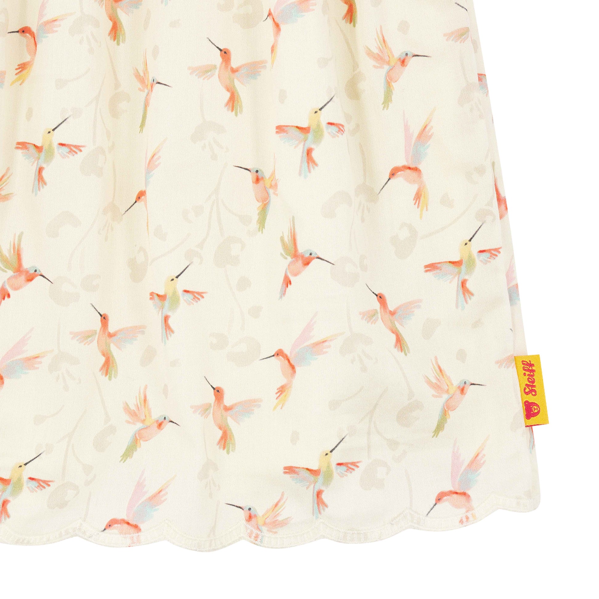Dieser wunderschöne Rock aus Baumwolle ist ein Highlight für kleine Mädchen mit Sinn für bezaubernde Details. In sanftem Beige gehalten, zeigt er einen fröhlichen Kolibri-Print, der Leichtigkeit und Freude versprüht. Zarte Raffungen an der Taille schenken eine bequeme Passform und lassen genug Bewegungsfreiheit für jedes Abenteuer. Am Saum verleiht eine wellenförmige Stickerei dem Rock eine liebevolle, stilvolle Note. Das flauschige Steiff Teddybärmotiv rundet das Design charmant ab und begleitet kleine Weltentdeckerinnen mit einem Hauch von Magie.