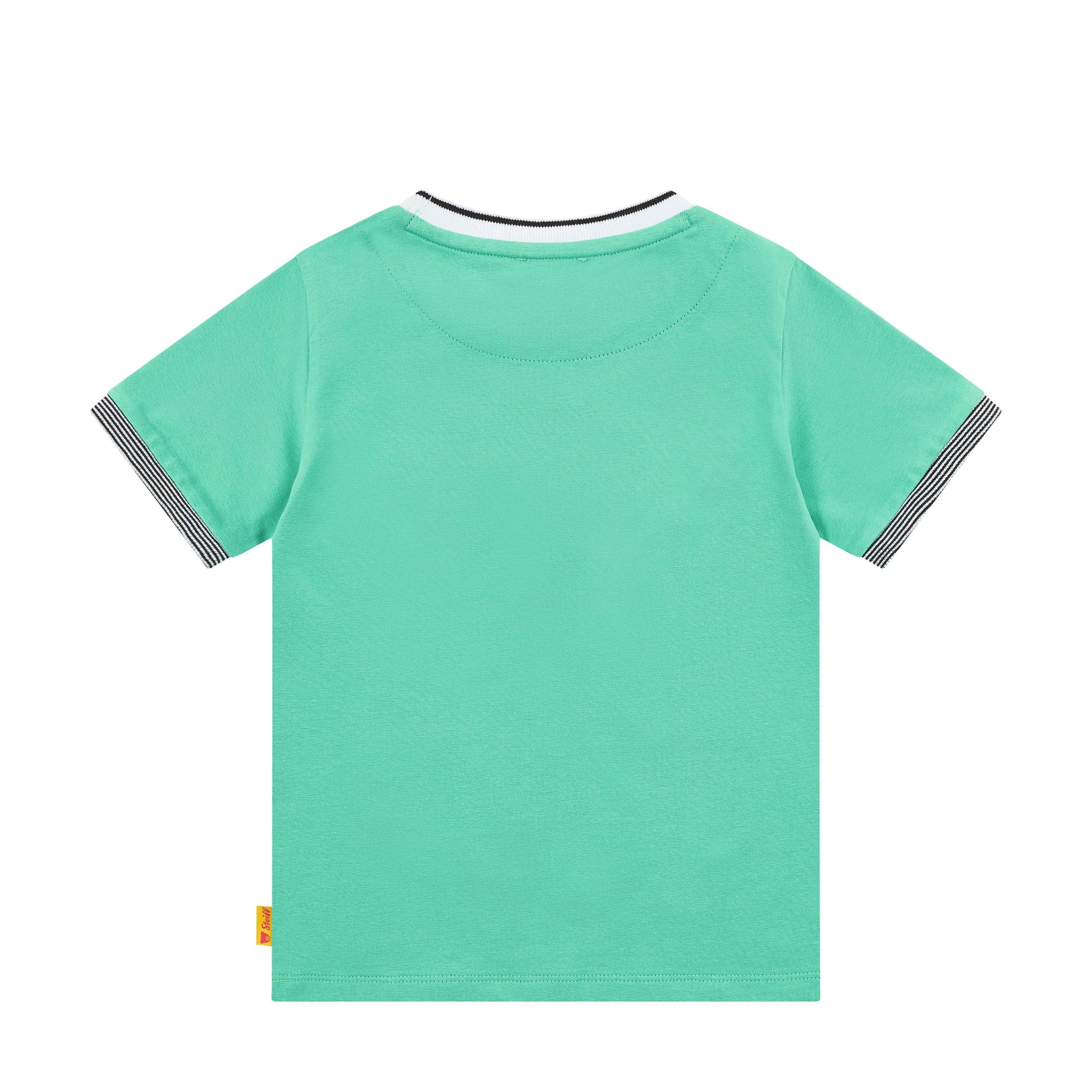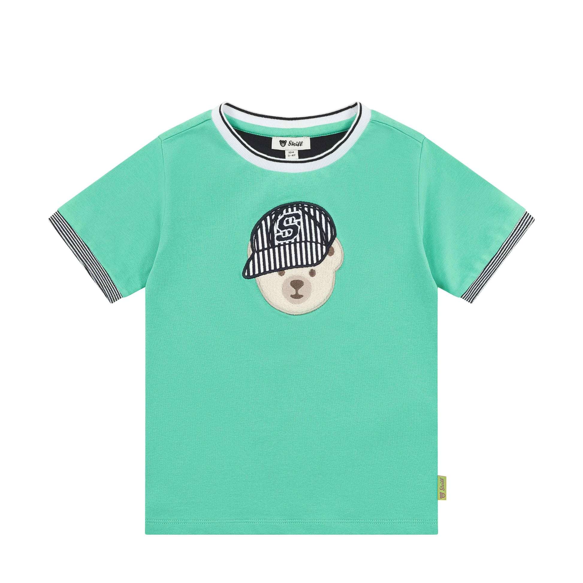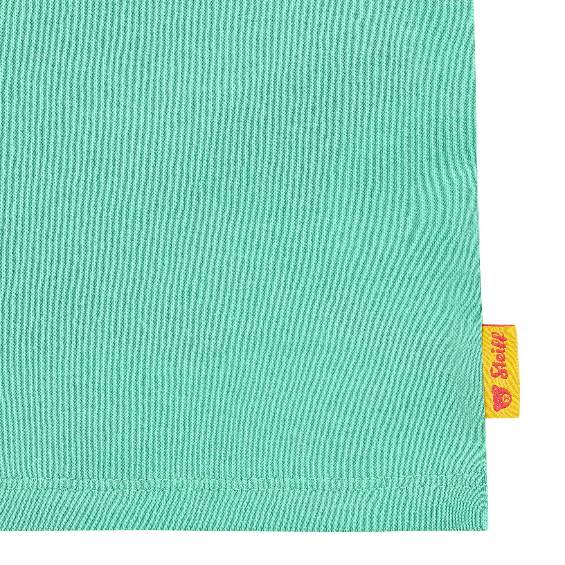 Dieses lässige T-Shirt in kräftigem Grün ist ein echtes Wohlfühlteil für kleine Entdecker! Aus weichem Jersey gefertigt und mit lockerer Passform bietet es besonders an warmen Tagen herrlichen Tragekomfort und viel Bewegungsfreiheit. Der gerippte Halsausschnitt und die Ärmelbündchen mit sportlichen Streifen verleihen dem Shirt einen coolen Look. Das flauschige Steiff Teddybärmotiv mit niedlicher Mützen macht das Shirt zum absoluten Lieblingsstück, das in keiner Abenteuer-Garderobe fehlen darf!