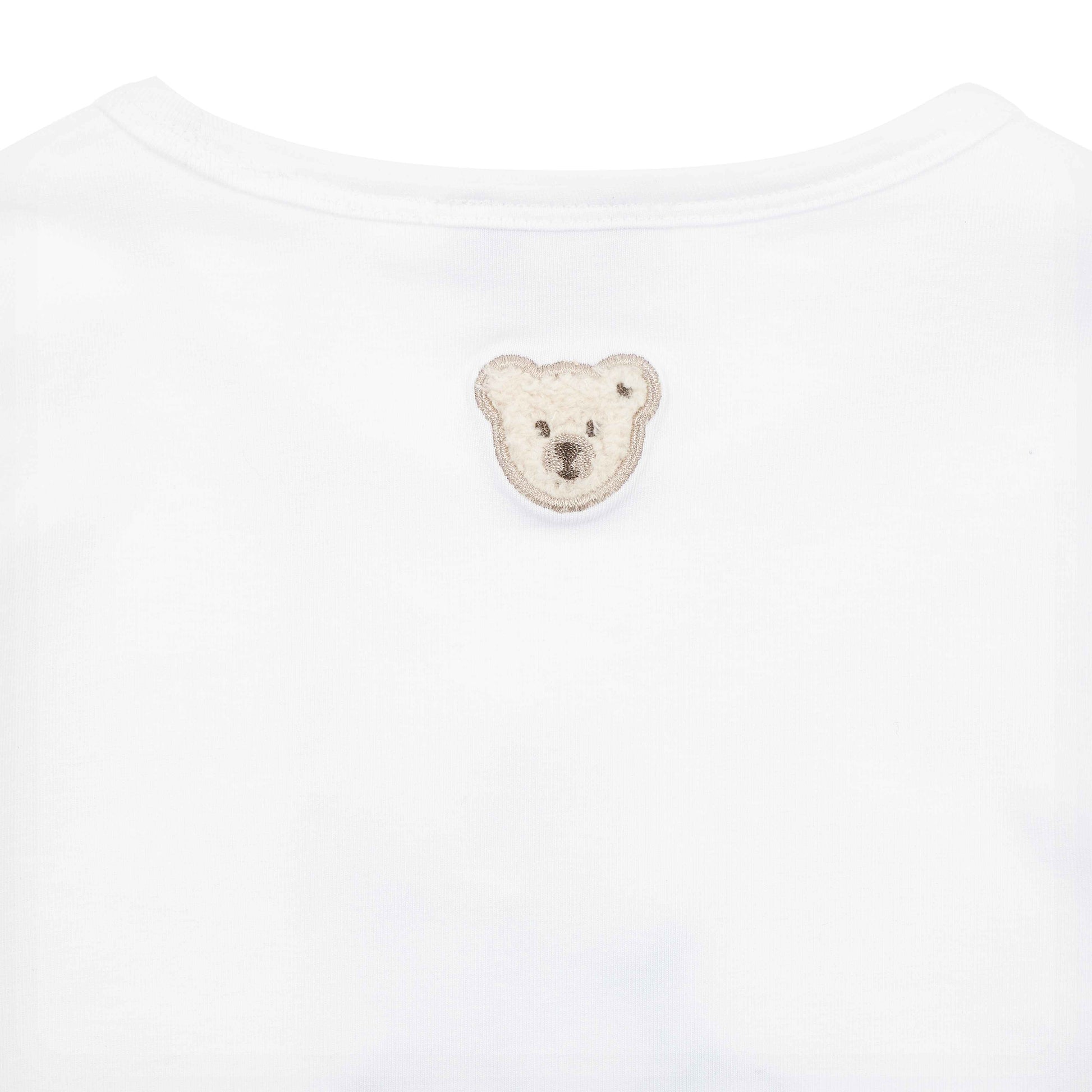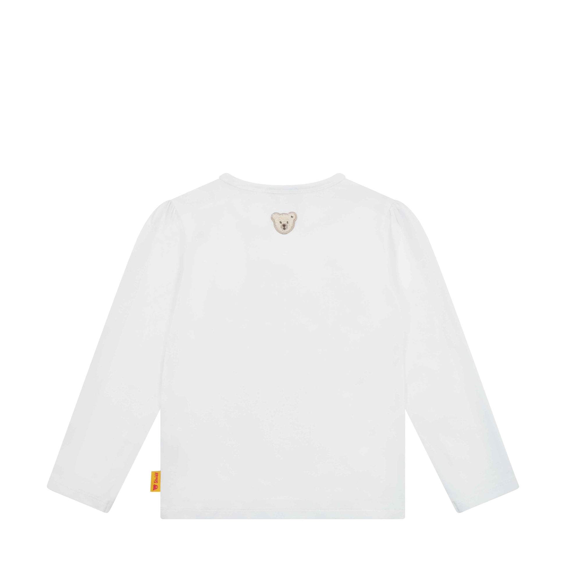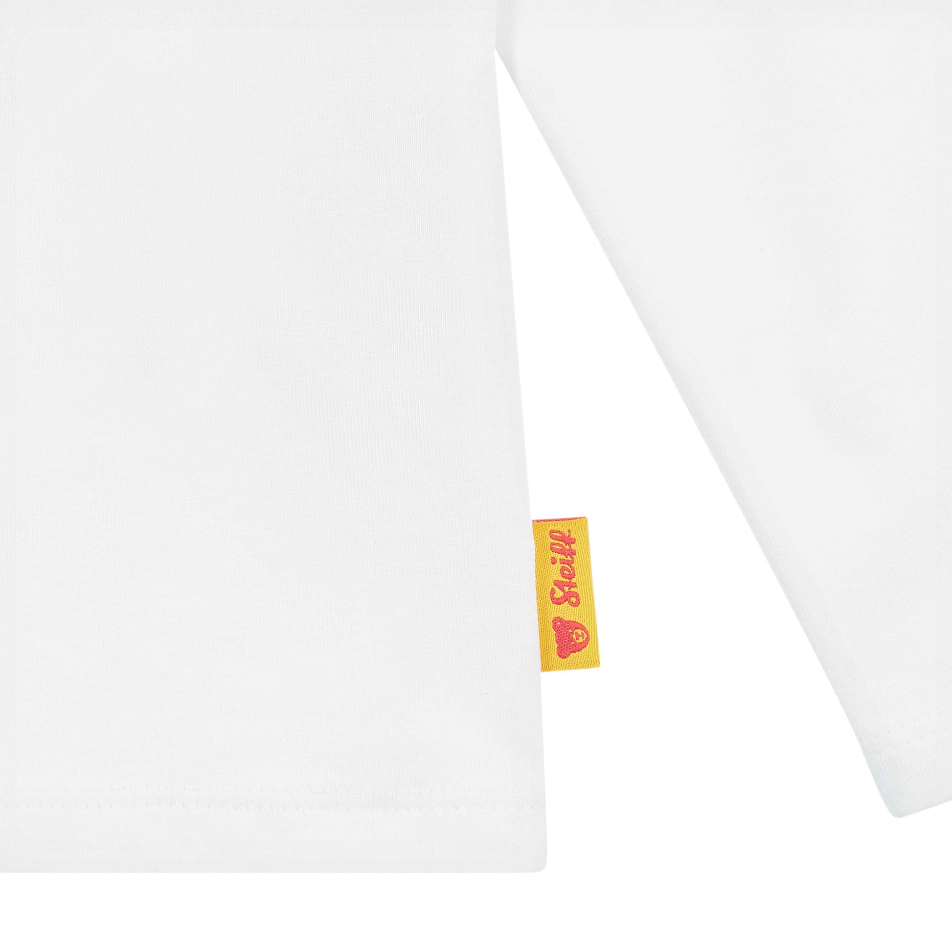 Das langärmelige T-Shirt in klassischem Weiß ist ein wunderschönes Basic für kleine Abenteurerinnen. Der leichte, kuschelige Jersey-Stoff schmiegt sich sanft an die Haut und bietet viel Bewegungsfreiheit. Ein niedlicher Teddybär-Print auf der Brust zaubert ein Lächeln, während das flauschige Steiff Teddybärmotiv am Rücken Geborgenheit und Vertrauen schenkt. Ein vielseitiges Lieblingsstück, das durch Stil und Kuschelfaktor überzeugt.