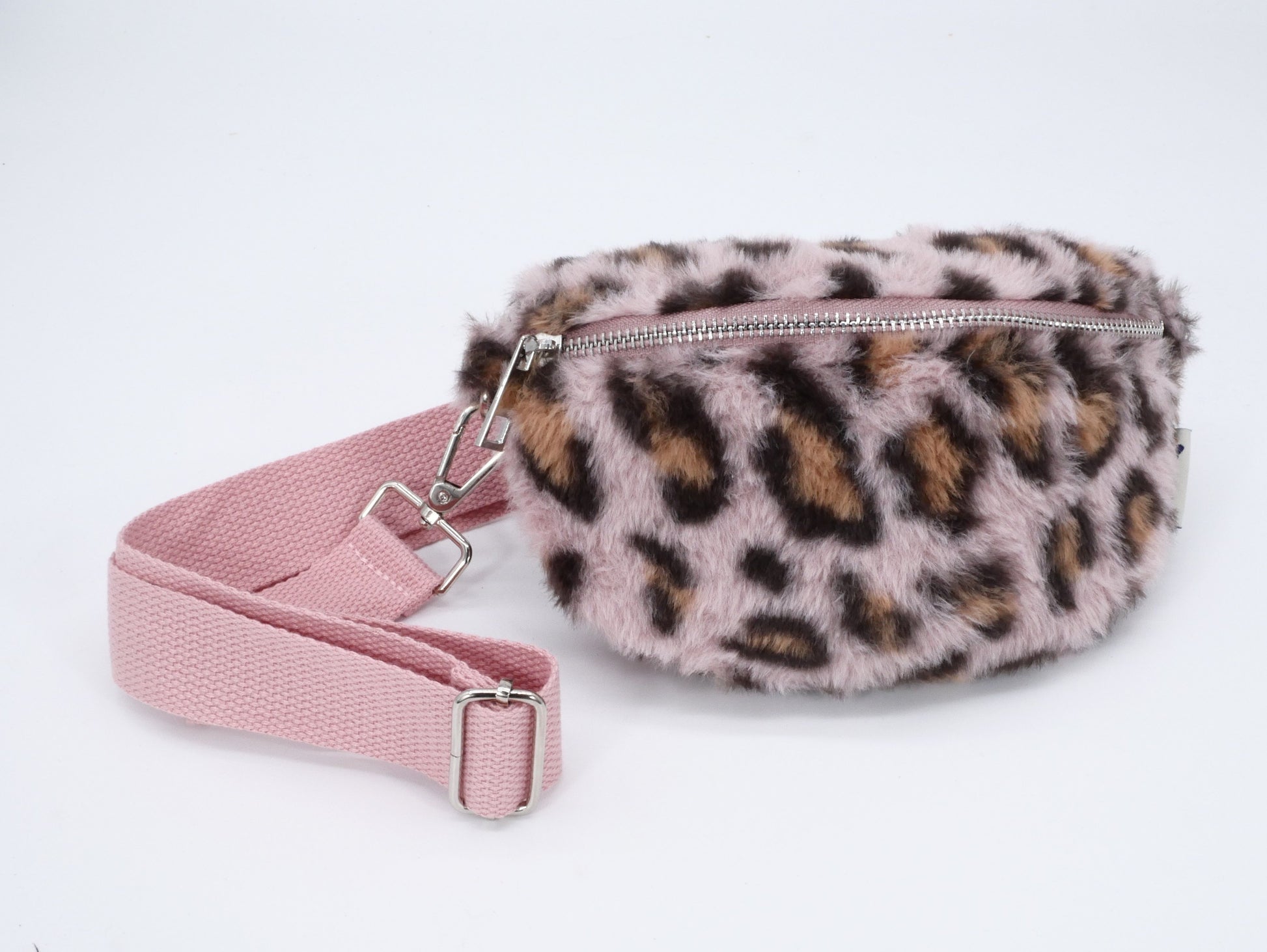 Ein echtes Highlight für kleine Fashion-Fans! Die superweiche Plüsch-Oberfläche im trendigen Leo-Design macht diese Tasche zu einem absoluten Hingucker. Der verstellbare, rosafarbene Tragegurt sorgt für perfekten Sitz, während die goldfarbenen Reißverschluss-Details für einen Hauch Glamour sorgen ✨.