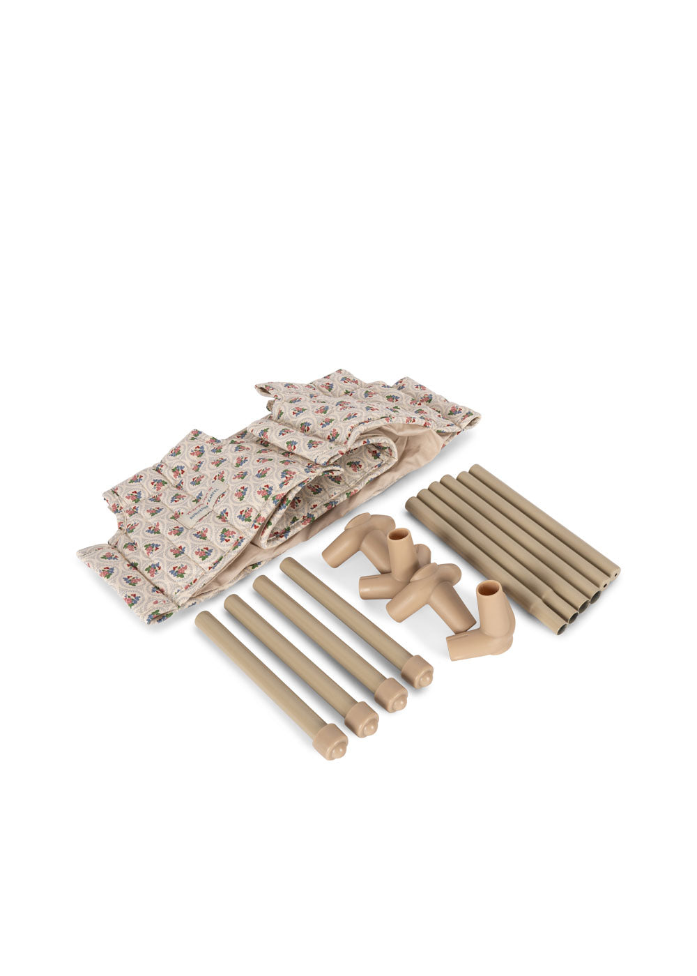 Für kleine Puppeneltern, die unterwegs nichts missen wollen: Dieses süße Puppenreisebett kommt im hübschen Blumenprint und lässt sich dank der praktischen Tragetasche ganz einfach transportieren. Ob zu Oma, in den Urlaub oder ins Kinderzimmer neben das eigene Bett – die Lieblingspuppe ist immer gut aufgehoben.