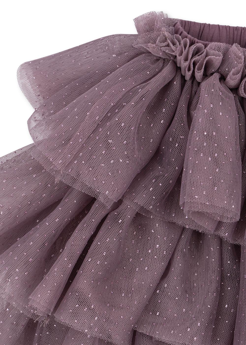 Ein Traum aus Tüll – dieser zauberhafte Rock in sanftem Fliederrosa sorgt für funkelnde Auftritte. Die weichen Tülllagen mit feinem Glitzer bringen Volumen und Leichtigkeit, während das Innenfutter aus 100 % Bio-Baumwolle für ein angenehmes Tragegefühl auf der Haut sorgt.