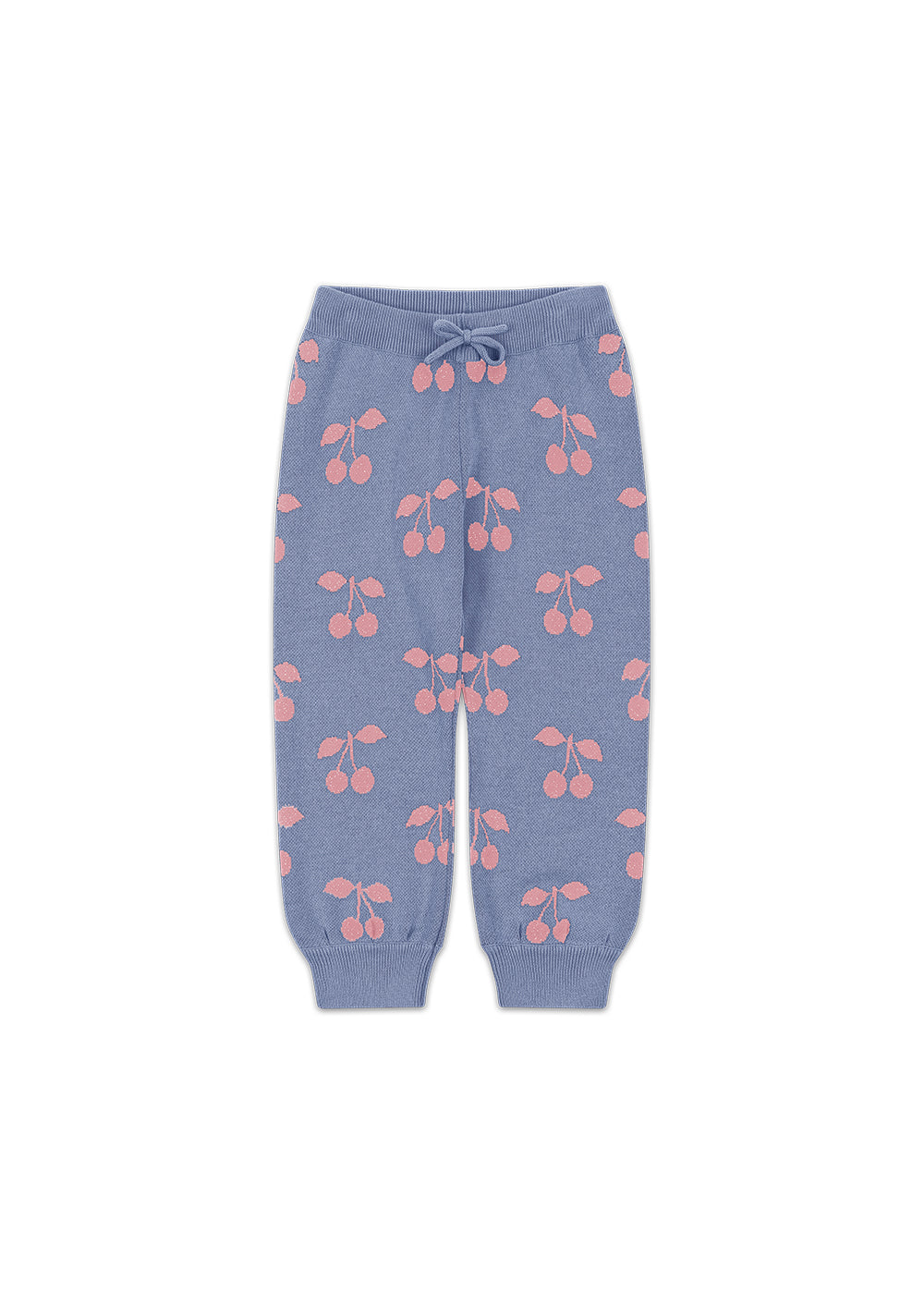 Der elastische Bund mit feiner Kordel schenkt sicheren Halt, während das verspielte Kirschenmuster die Hose zu einem fröhlichen Lieblingsstück macht.