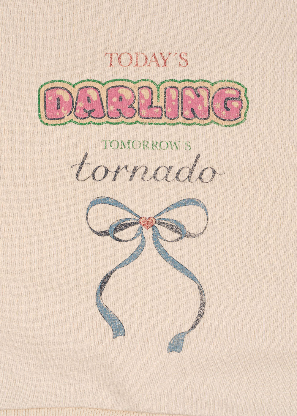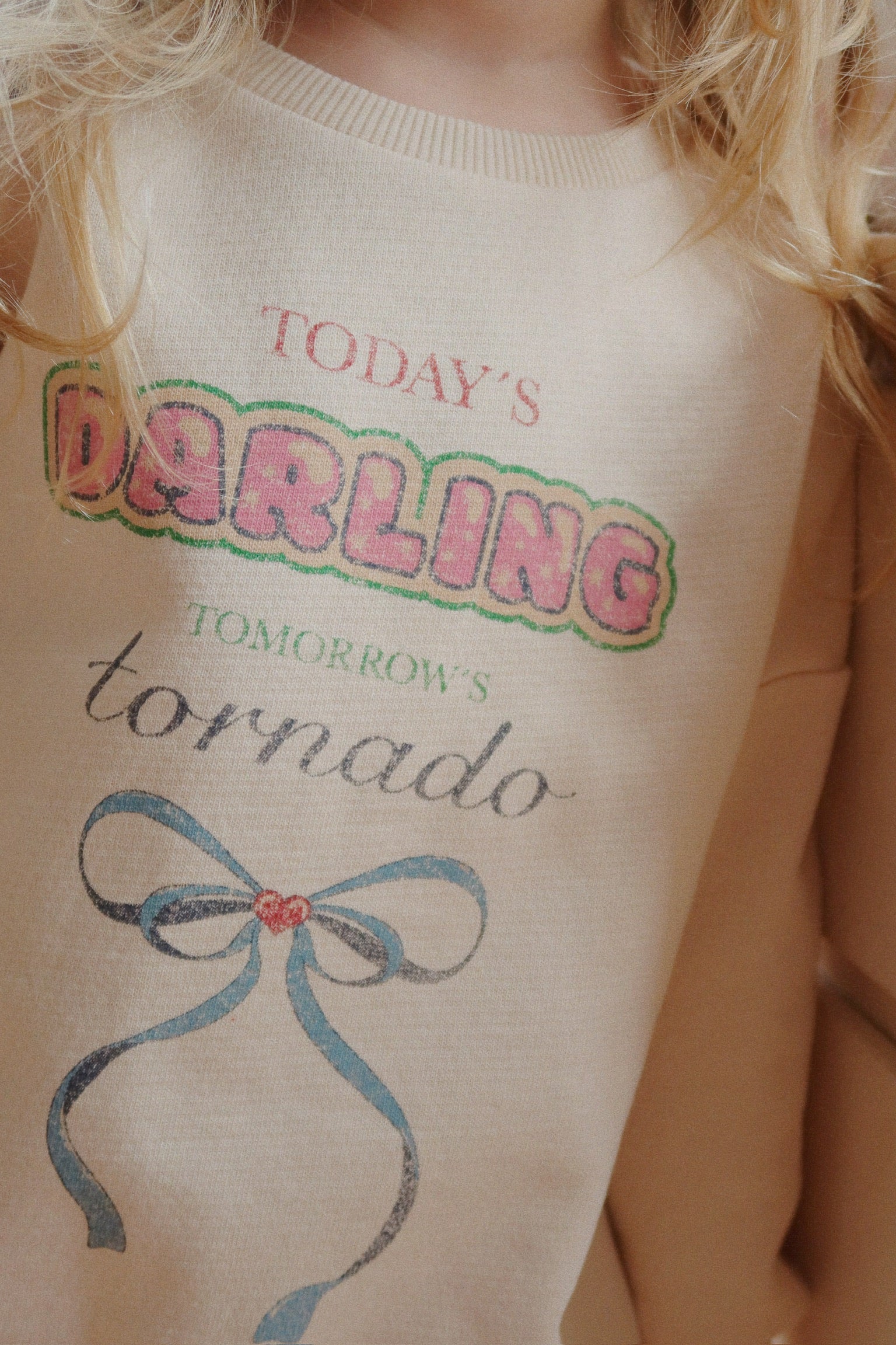 Dieses süße Sweatshirt von Konges Sløjd sorgt für ein Augenzwinkern im Alltag: „Today’s Darling – Tomorrow’s Tornado“ steht auf der Vorderseite und spiegelt den kleinen, liebenswerten Alltagstrubel perfekt wider 💕🌪️.