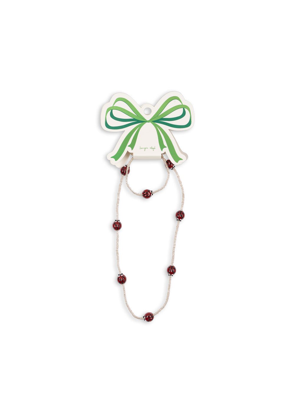 Einfach zauberhaft – dieses Set aus Halskette und Armband bringt kleinen Schmuckliebhaberinnen ganz viel Freude! Die feinen Perlenketten sind mit niedlichen Marienkäfern verziert, die Glück und gute Laune versprühen.