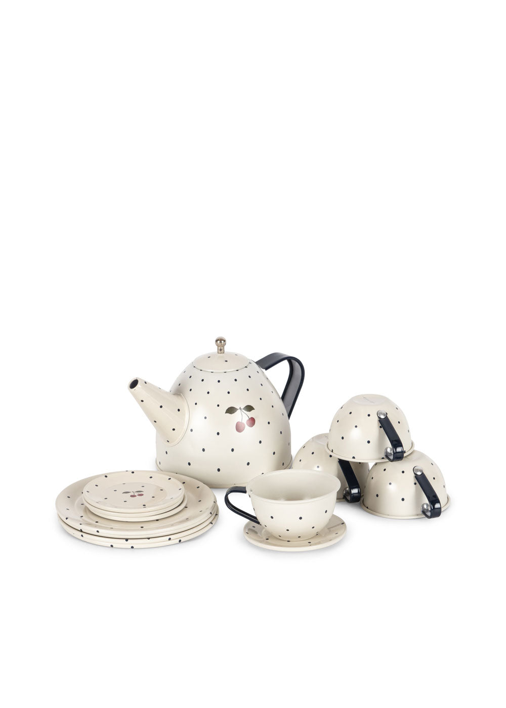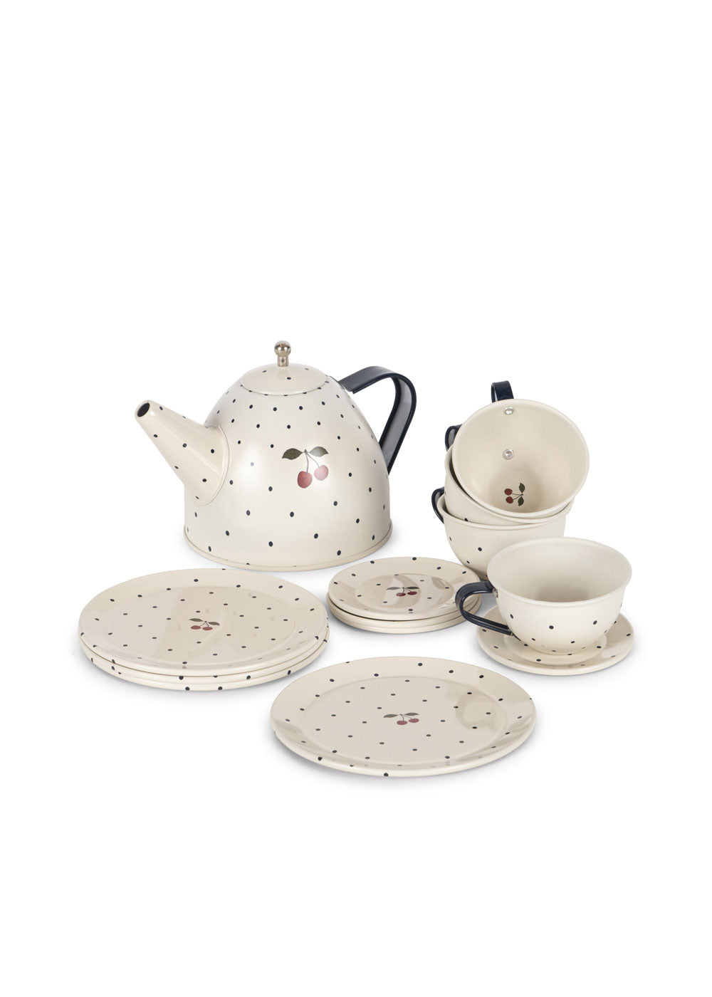 Einmal bitte alles für die Teeparty! Mit diesem wunderschönen Spielzeug-Set können kleine Gastgeber*innen ihre ganz eigenen Minifeiern inszenieren – mit Kanne, Tassen & Tellern wie bei den Großen. Die zarten Kirschdetails und das nostalgische Design bringen einen Hauch französischer Landhaus-Romantik ins Kinderzimmer. ✨🍰
