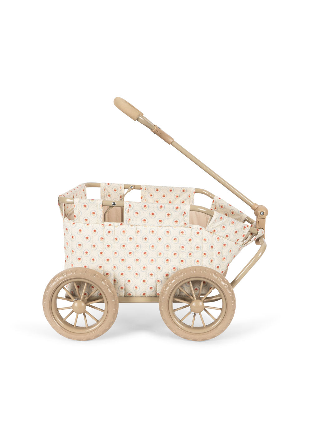 Die sanft laufenden Räder und der kindgerechte Griff sorgen dafür, dass kleine Hände den Wagen mühelos hinter sich herziehen können – im Kinderzimmer, im Garten oder unterwegs bei kleinen Spaziergängen.