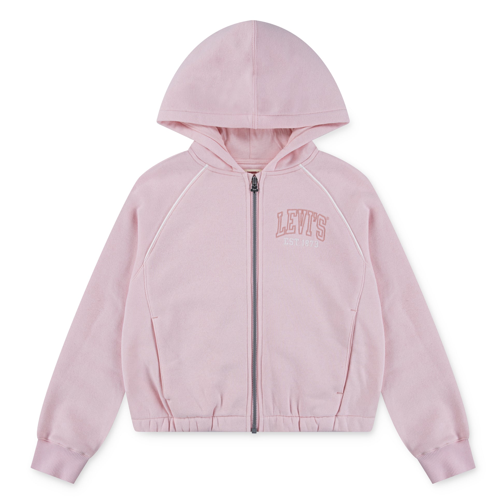 Dieser Zip-Hoodie von Levi’s® vereint bequemen Tragekomfort mit einem stylischen Look. Der zarte Rosaton, die kontrastierenden Paspeln und die auffälligen Logo-Stickereien vorne und hinten machen ihn zu einem echten Hingucker.