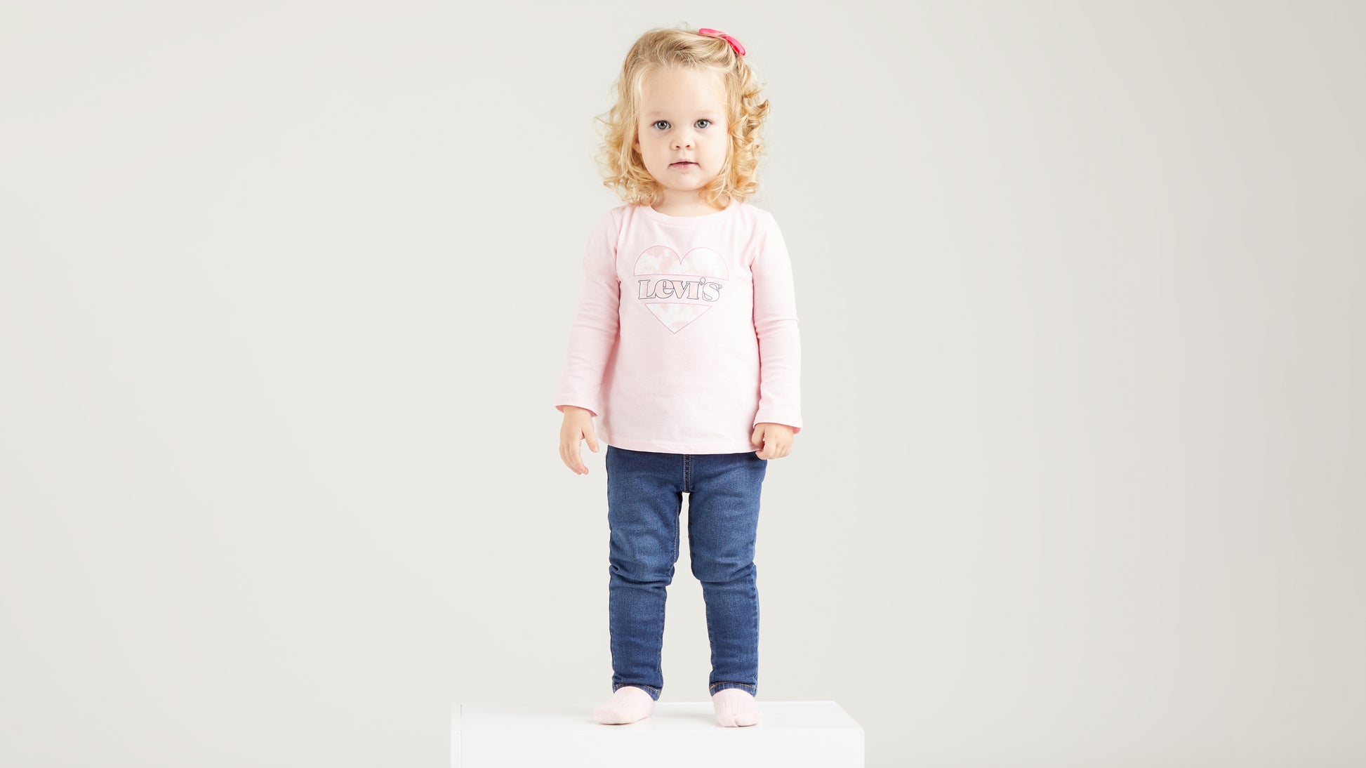 Bequem, cool und perfekt für kleine Abenteurerinnen: Diese süße Skinny Jeans von Levi’s® überzeugt mit ihrem weichen Denim und dem elastischen Bund, der ganz ohne Knöpfe oder Reißverschluss auskommt. Einfach reinschlüpfen und wohlfühlen!