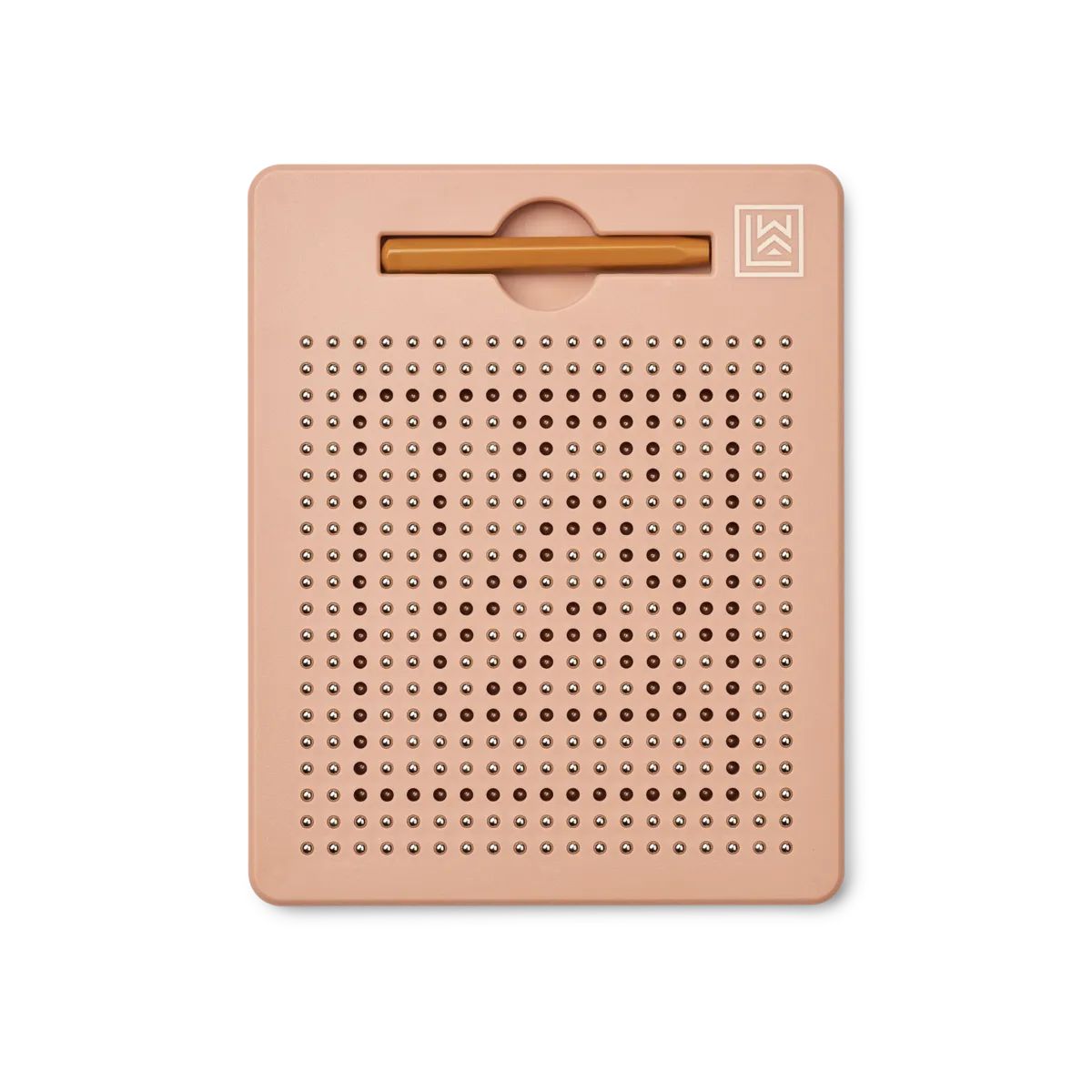 Mit dem mitgelieferten Magnetstift können kleine Künstler:innen ihrer Fantasie freien Lauf lassen: Herzen, Sterne, Tiere oder wilde Muster – alles wird kinderleicht auf die Tafel gezaubert. 🖊️✨ Und wenn die Leinwand wieder frei sein soll, legt man den Stift einfach horizontal hin und zieht ihn über das Brett – schon ist Platz für neue Meisterwerke!