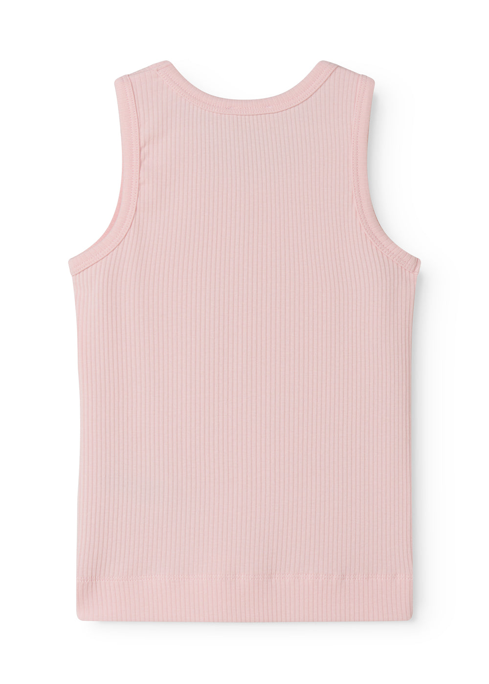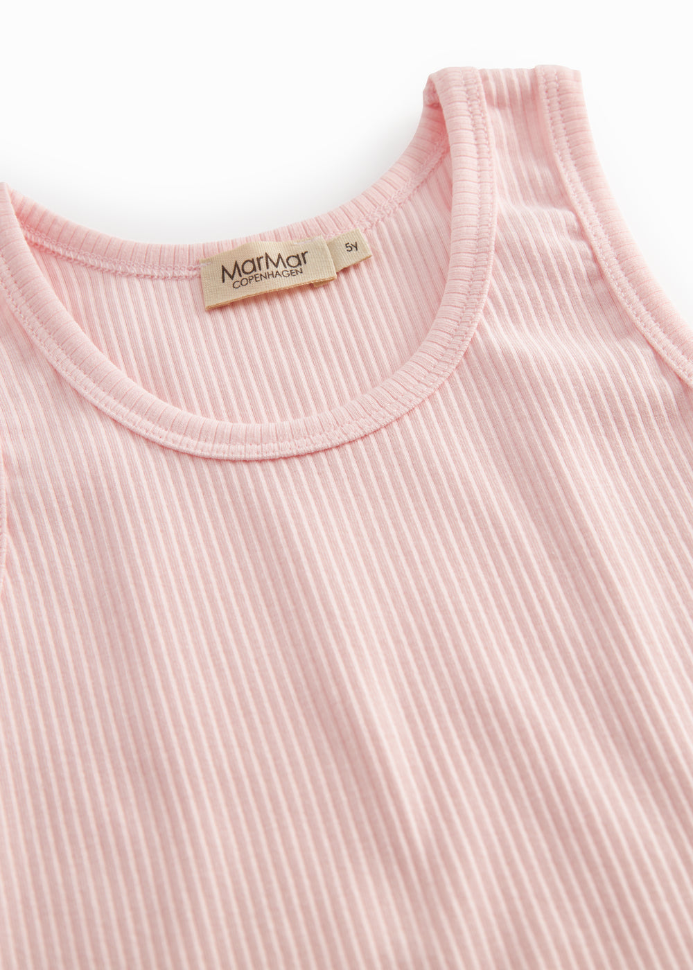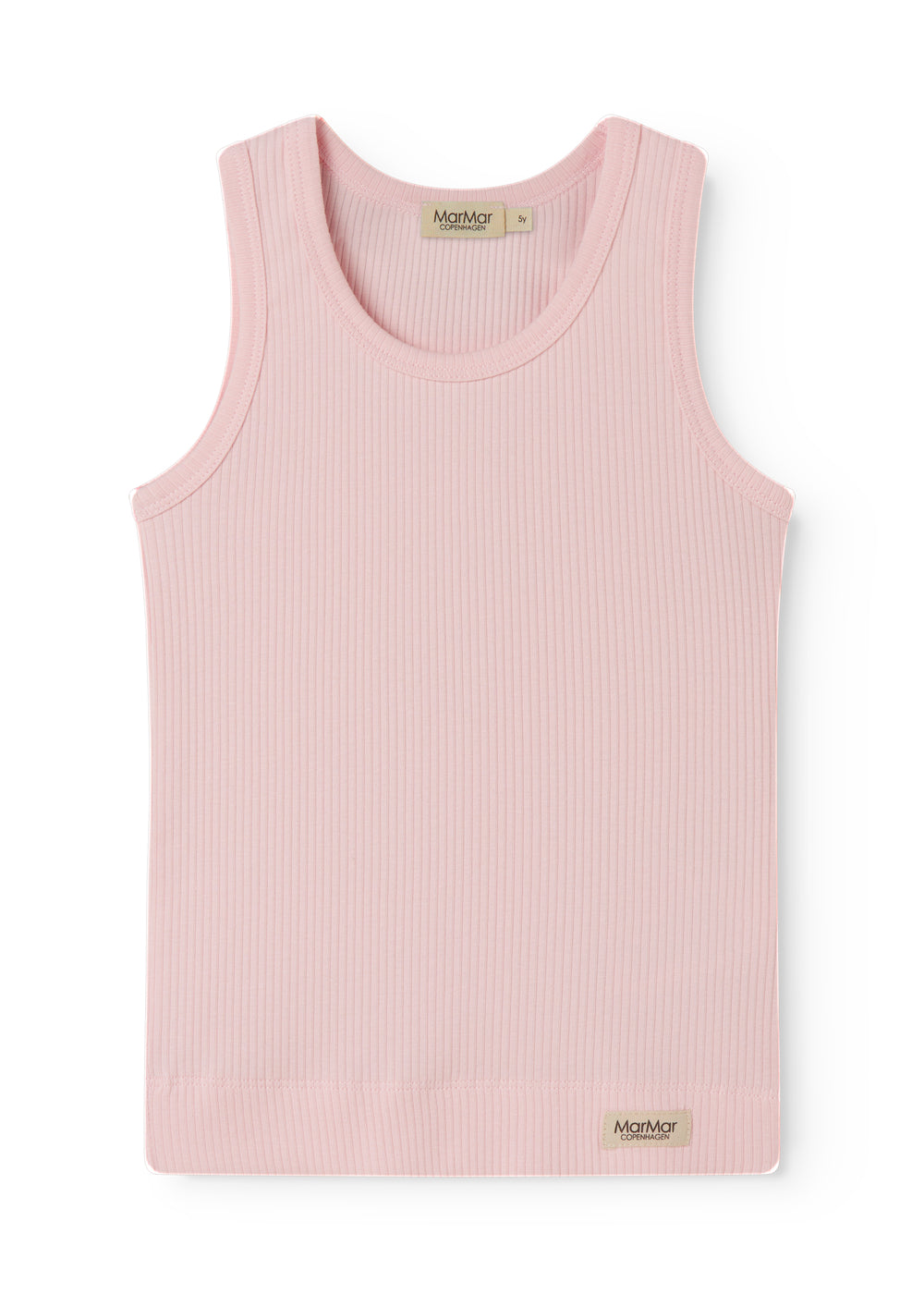 Dieses gerippte Tanktop von MarMar Copenhagen in der Farbe Rose Touch verzaubert mit seinem sanften Roséton und der feinen Rippstruktur. Durch den hochwertigen Materialmix mit Modal fühlt sich der Stoff besonders weich, glatt und fast seidig an – perfekt für empfindliche Kinderhaut.