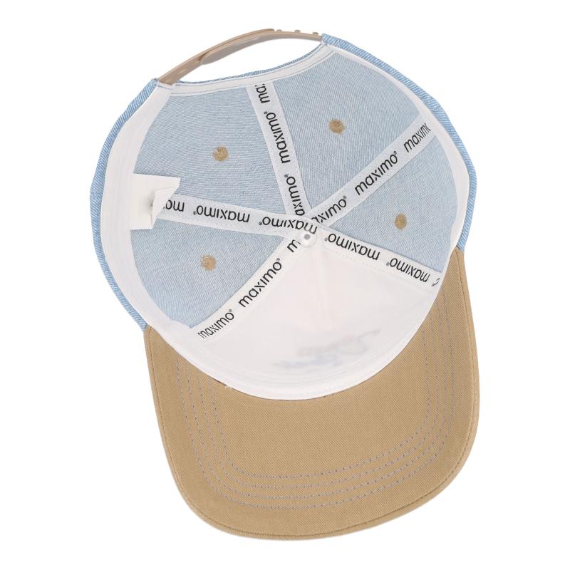 Die harmonische Farbkombination aus hellem Denim-Blau, Creme und warmem Camel wirkt modern und lässt sich vielseitig kombinieren. Die leichte Baumwollqualität sorgt für ein angenehmes Tragegefühl, während das gebogene Schild Gesicht und Augen vor Sonne schützt.