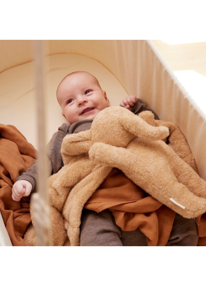 Hergestellt aus Bio-Baumwolle, fühlt sich Magma besonders weich an und lädt zum Kuscheln ein. Die warme, erdige Farbe strahlt Ruhe aus und passt harmonisch ins Kinderzimmer.