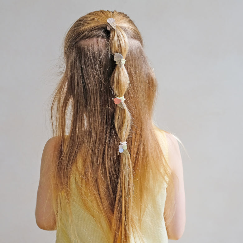Zarte Eiscreme-Motive in soften Pastelltönen bringen verspielte Leichtigkeit ins Haar und machen jedes einzelne Zopfgummi zu einem süßen Hingucker.