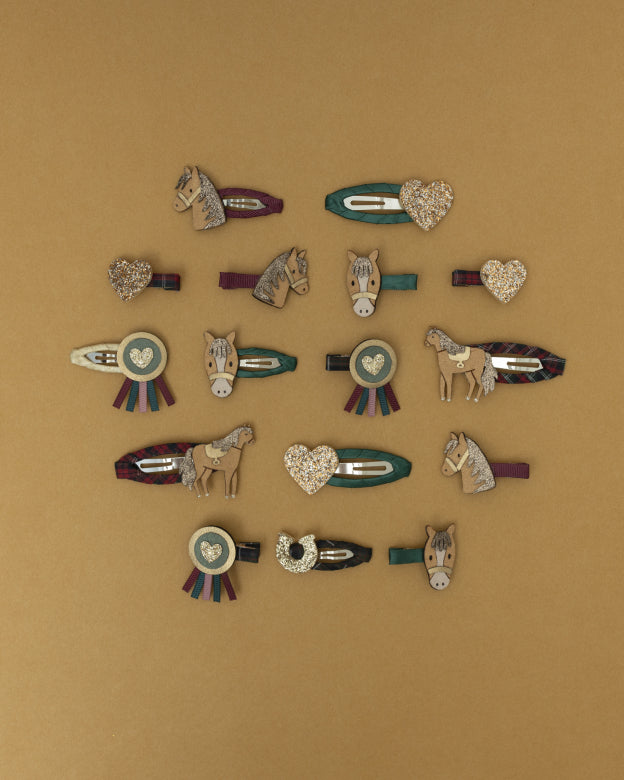 Ein echtes Highlight für kleine Pferdefans 🐴✨ – dieses Haarspangen-Set bringt den Reiterhof direkt ins Kinderhaar! Enthalten sind gleich vier verschiedene Motive: süße Pferdeköpfe mit glitzernder Mähne, detailreiche Pferdegesichter, funkelnde Glitzerherzen 💖 und hübsche Schleifenrosetten, die an echte Turnier-Schleifen erinnern. 🎀