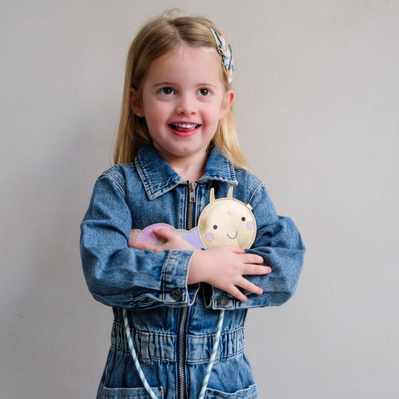 Eine fröhliche, fantasievolle Tasche voller Farbe, Glanz und guter Laune – perfekt für kleine Abenteuer mit ganz viel Herz 🐛✨